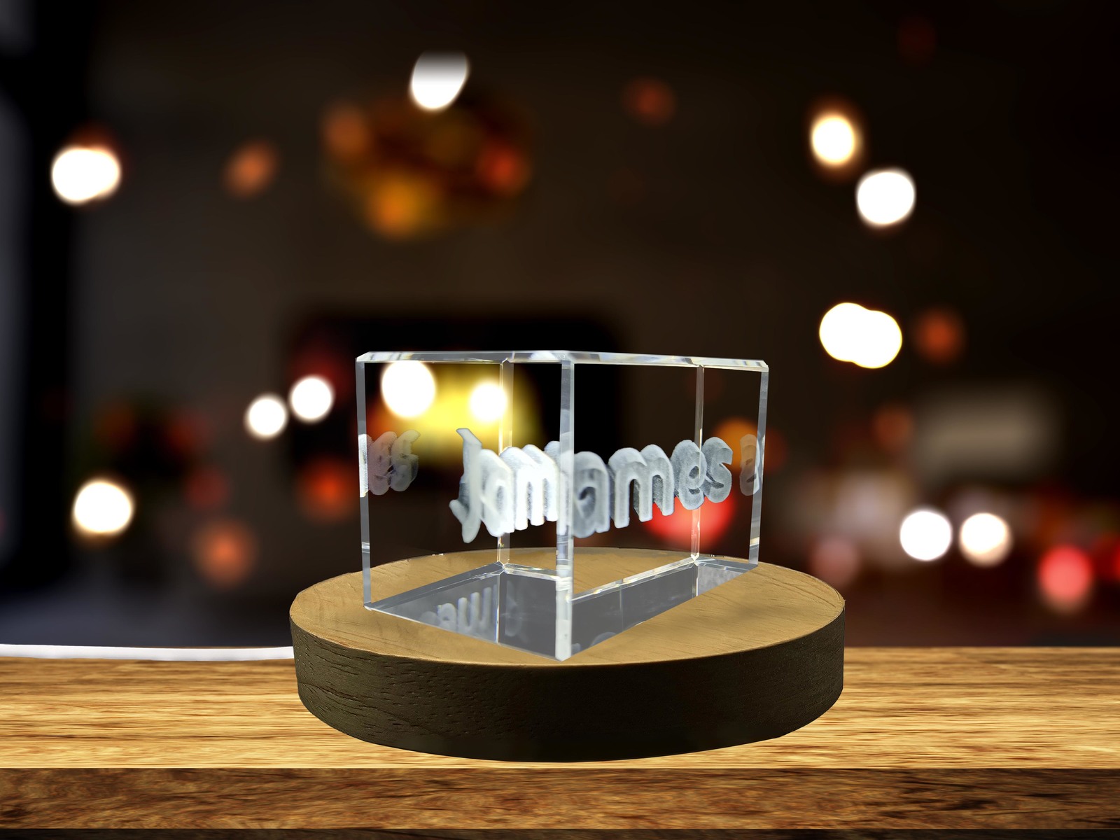 LED Base included | James - Names Art 3D Engraved Crystal