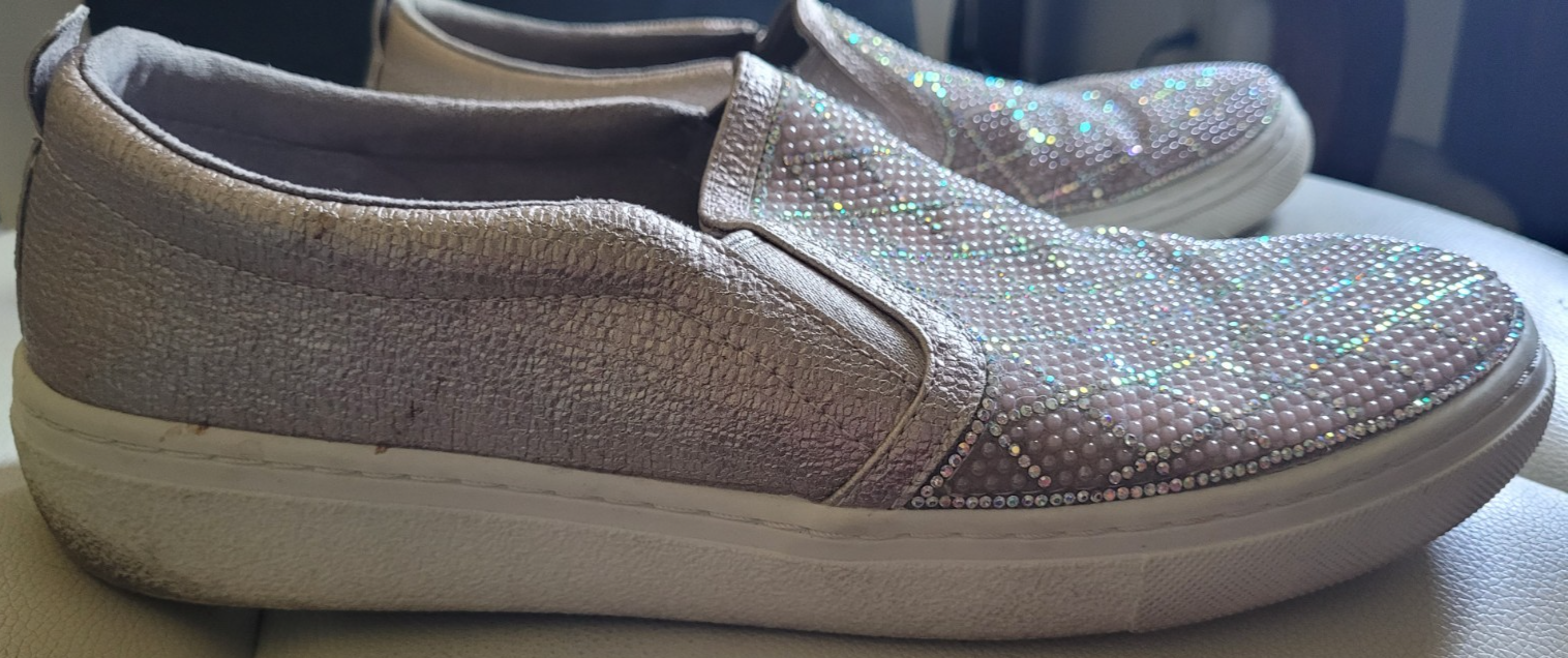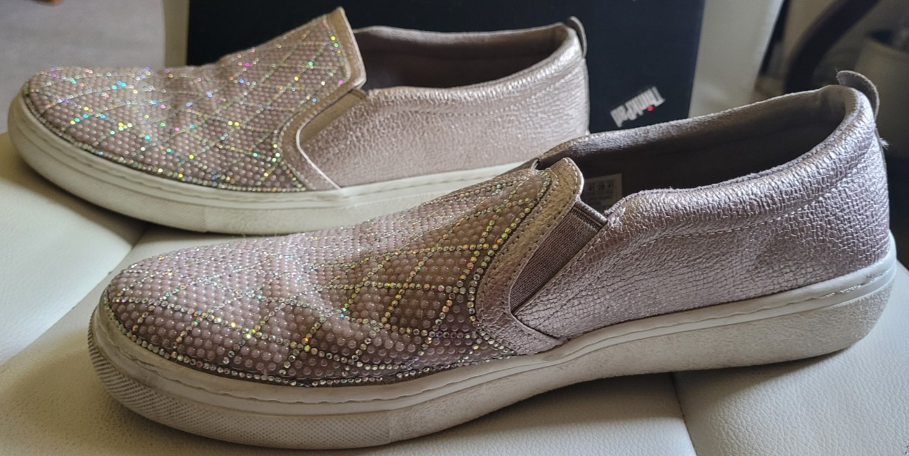 Women's Skechers Memory Foam Size 11 Slide-On Shoes Sparkly Shiny Walking Tan