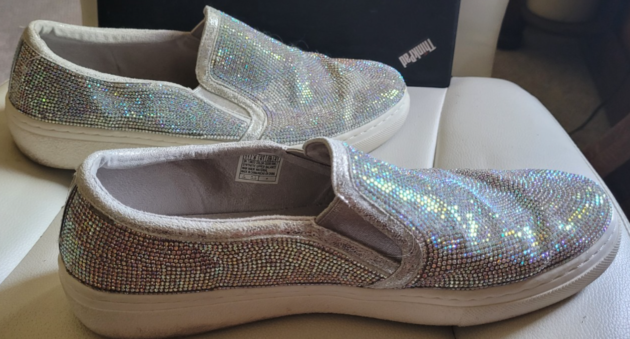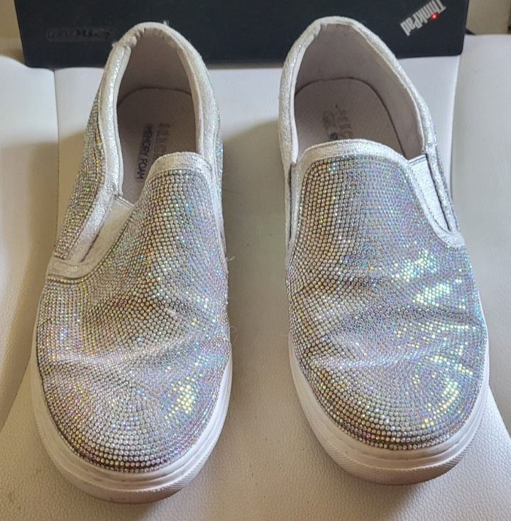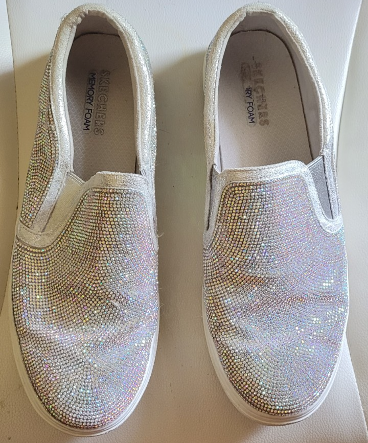 Women's Skechers Memory Foam Size 11 Slide-On Shoes Sparkly Shiny Walking