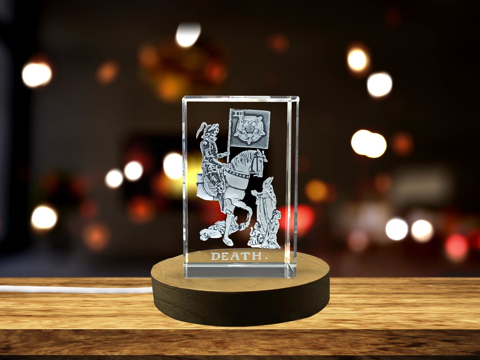 LED Base included | Death 3D Engraved Crystal - A Thought-Provoking Tarot