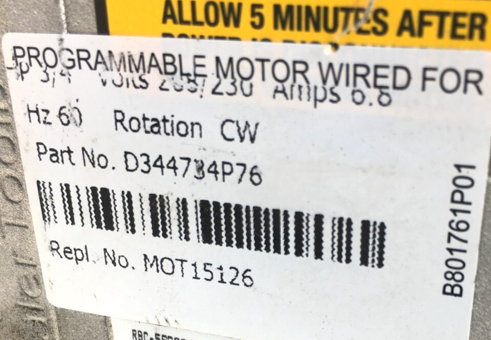 Genteq Eon HD02 3/4HP 208-230 V Trane MOT15126 D344734P76 CW LE rot. used #Z480