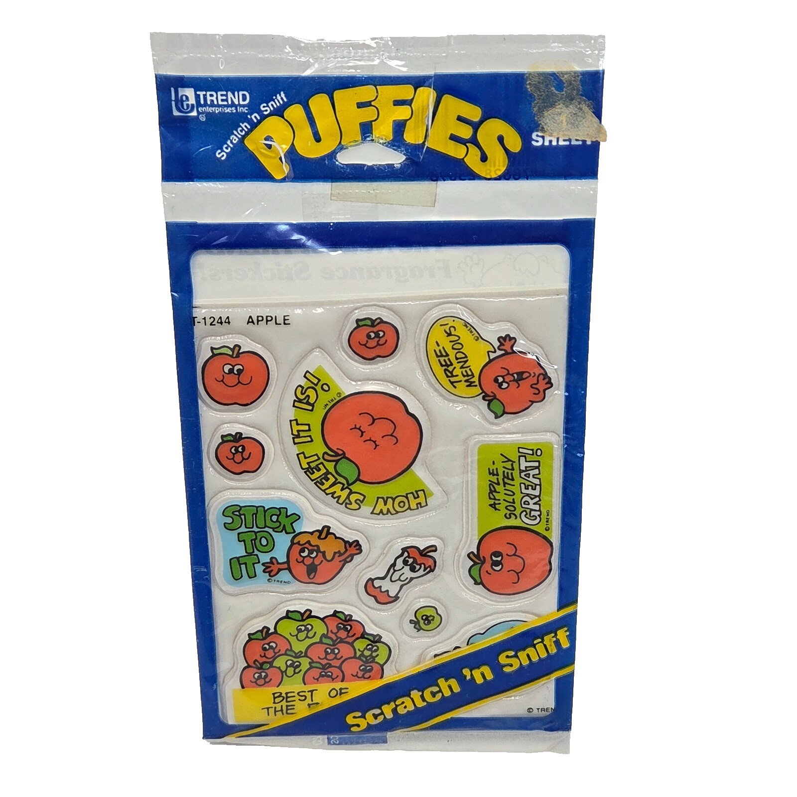 VINTAGE 1984 TREND SCRATCH N SNIFF PUFFIES PUFFY APPLE STICKERS NEW SEALED