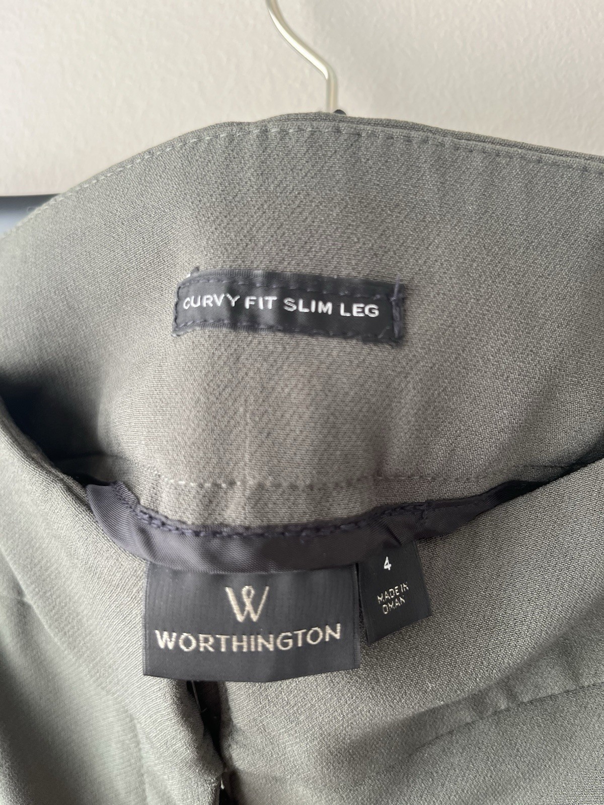 Worthington Womens Ladies Gray Curvy Fit Slim Leg Dress Pants Slacks Size 4 NEW. Shipped with USPS Ground Advantage.