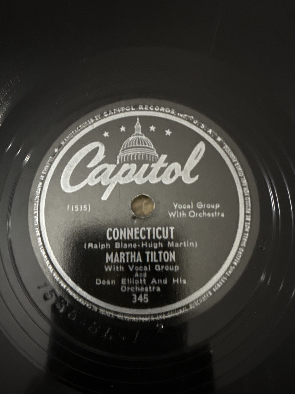 Connecticut Martha Tilton 78 RPM NO DUST COVER