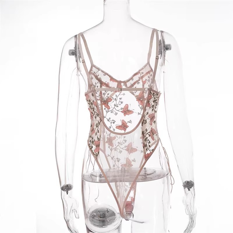Sexy Pink Butterfly Lingerie Women Sexy Bodysuit