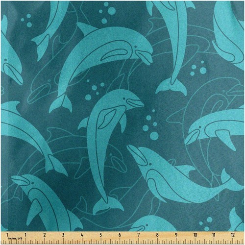 Cotton Dolphin Falls Ocean Water Bubbles Turquoise Fabric Print by Yard D488.66