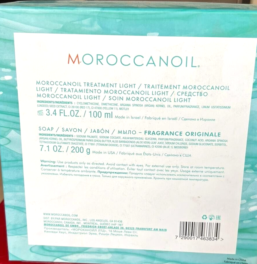 Moroccanoil Set: TREATMENT LIGHT 3.4 oz / 100mL, SOAP 7.1 oz / 200g