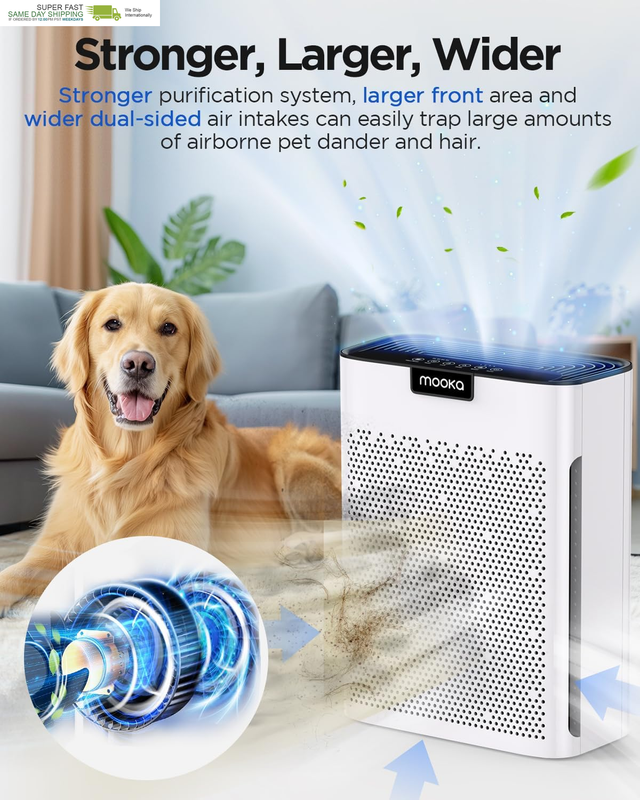 MOOKA KJ190L Air Purifier, Compact for Large Room, Powerful for Pet Families