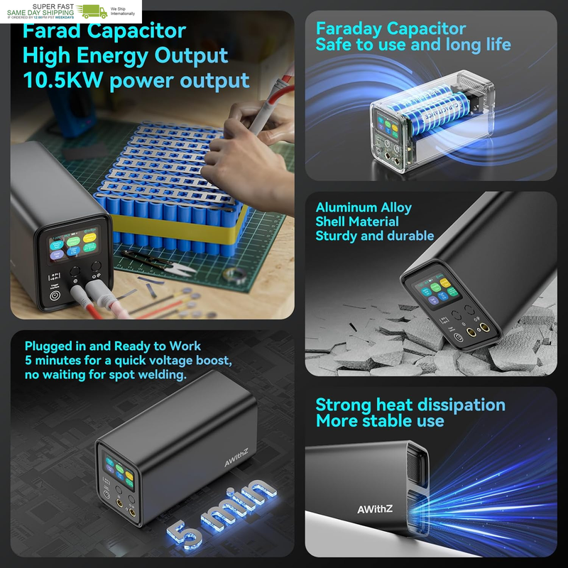Professional Battery Spot Welder: Equipped with built-in super energy storage capacitors, Ultra capacitors have many thoughts of cycle life, and the maximum pulse welding power can reach 10KW. It is a brand new MOS, with no interference to the circuit or tripping issues, stable and sustainable operation, making it the best choice for professionals and DIY enthusiasts. But please, you must use it by connecting it to the wall power and charging it while using it, because the Faraday capacitor stores very little electricity and will be consumed within a minute or two