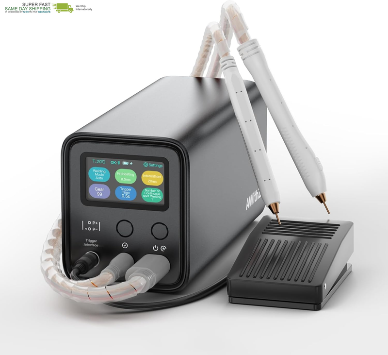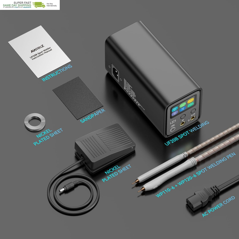 Exquisite Packaging and Matching: We include a UF20 spot welding machine, a charger cable, a foot pedal (2m long), a pair spot welder pen, a roll of 2-meter nickel plated sheet, a file, and a manual. Matching to meet the needs of spot welding, you can immediately operate upon receiving the goods. Exquisite packaging can be used as a gift for friends in need