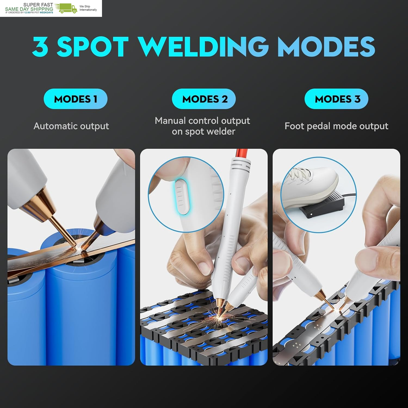 3-in-1 Mode: Our spot welder has an automatic mode and a manual mode, as well as a foot pedal mode. The automatic mode is where you adjust to the proper setting, insert the spot welder and start working immediately. Manual mode is to adjust to the manual mode, press the button on the spot welding pen will output once. Foot Mode, when you use the foot pedal, the positioning of the soldering probe is much easier. It is very convenient to step on the foot pedal and the spot weld pen will output a signal once
