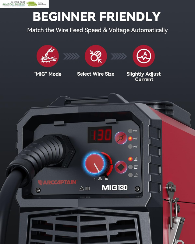 SYNERGIC CONTROL: The recommend current and wire feeding speed will be automatically matched after selected diameter of the welding wire(you can choose .030"/.035"/.040" flux core wire). The MIG welder is easier for beginners or those that are learning to weld and want to make small repairs around the house.
