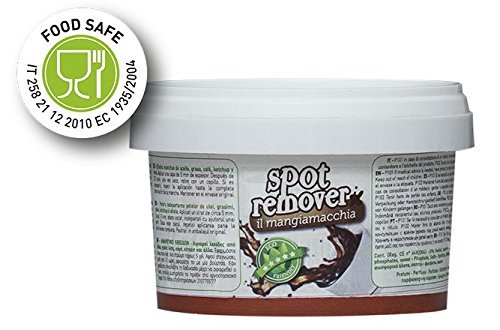 Mangiamacchia Spot Remover removes oil, grease, coffee, ketchup spots and others. This product is certified and guaranteed foodsafe for direct contact and easy to use!