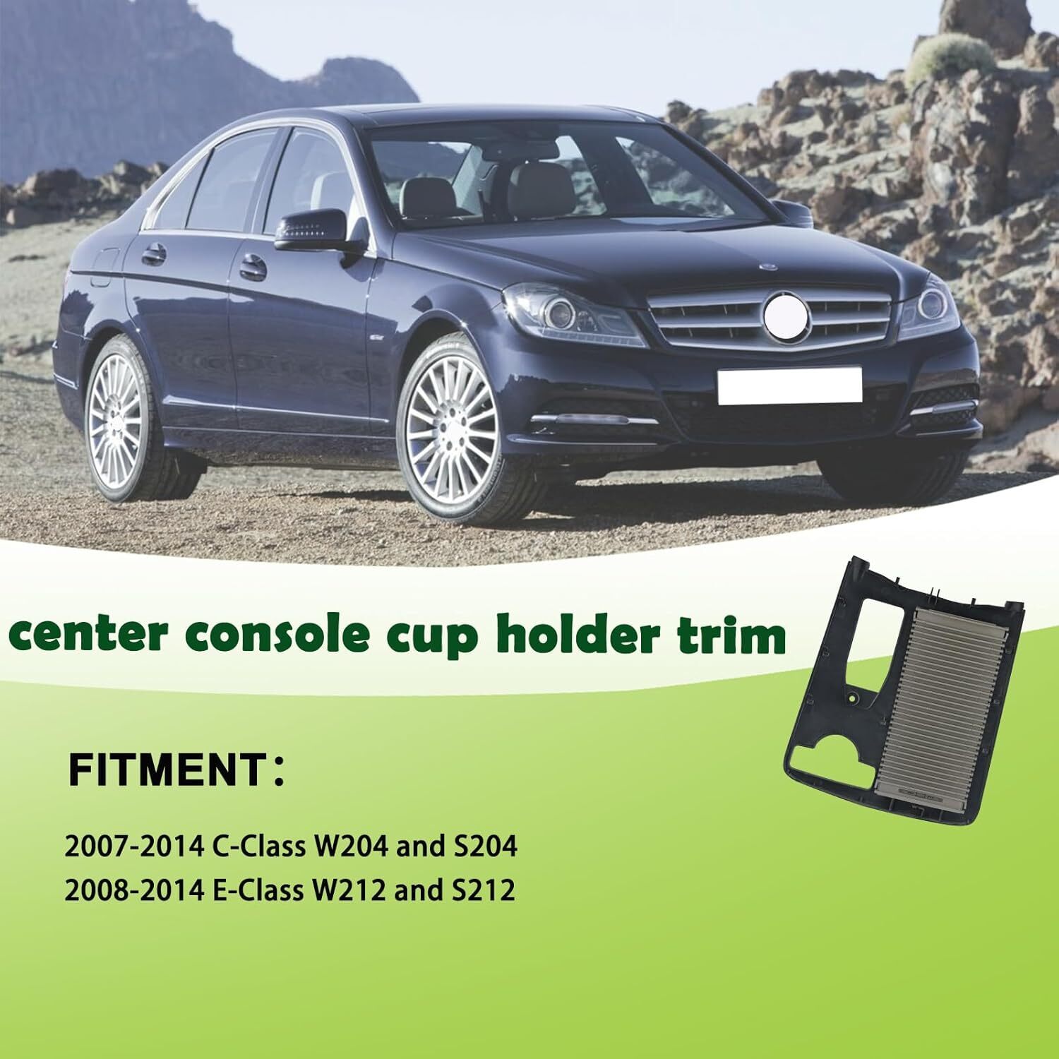 REPLACEMENT PART NUMBER: 2046800107 2046807607 2046804708 COMPATIBLE WITH: The center console cup holder trim slide cover compatible with 2007 2008 2009 2010 2011 2012 2013 2014 07 08 09 10 11 12 13 14 C-Class W204 and S204,2008 2009 2010 2011 2012 2013 2014 08 09 10 11 12 13 14 E-Class W212 and S212,Please refer to the vehicle compatibility above to ensure proper part FEATURES: The cup holder cover frame trim is made of high-quality plastic with strong stability and long lasting durability.Replacement new parts fit perfectly with the car to restore the appearance of your center console and help provide a safer driving experience SERVICE LIFE EASY INSTALLATION: Our center console cup holder tray roller blind cover is not the real original parts,but it uses advanced technology and high-quality materials in line with oem standards,more effective extension of service life,directly replace the old center armrest trim cover,easy to install can save you time and money BUY WITH CONFIDENCE: 1-Year Warranty.If you have any questions or concerns about the center console roller blind cover cup holder cover ,please contact us by email and we will provide you with satisfactory service support