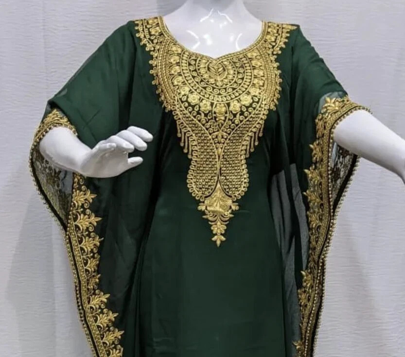 Kaftan Green Moroccan African New Handmade Dubai Abaya Dress Fancy Long Party