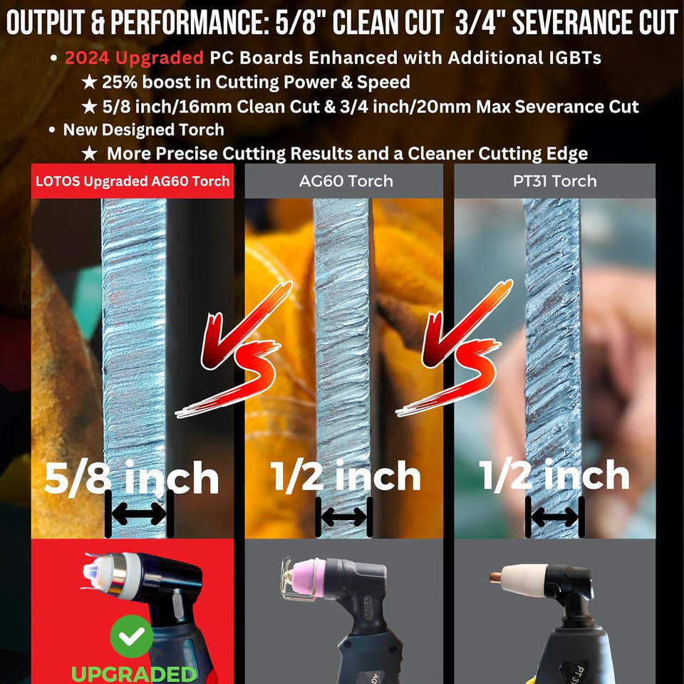 ? ???? ???????? ?????: 5/8-inch (16mm) Clean Cut, 3/4-inch (20mm) Severance Cut, Newly Upgraded PC board, Remarkable 25% Increase in Cutting Power compared to other standard 50-amp plasma cutters.