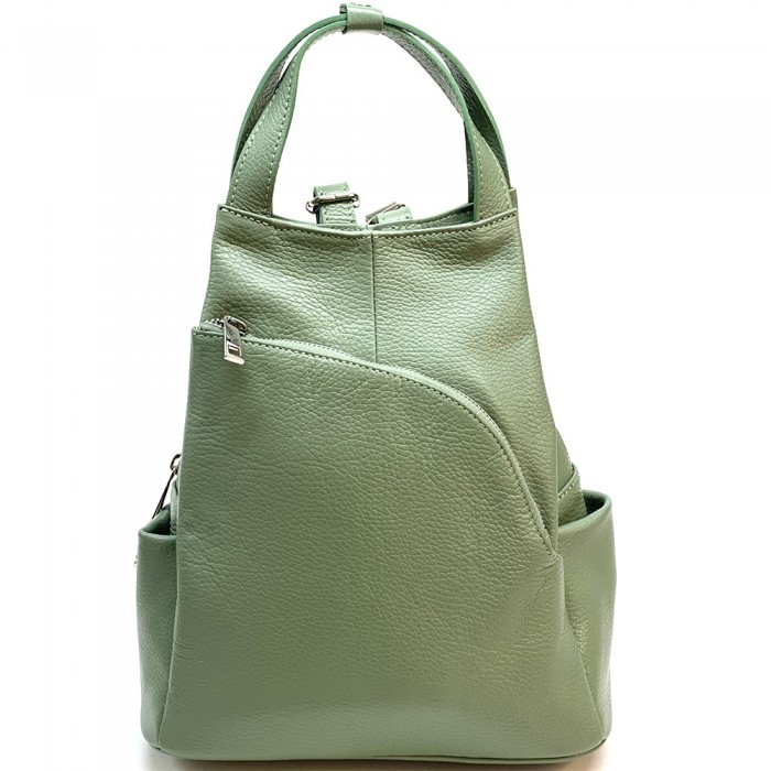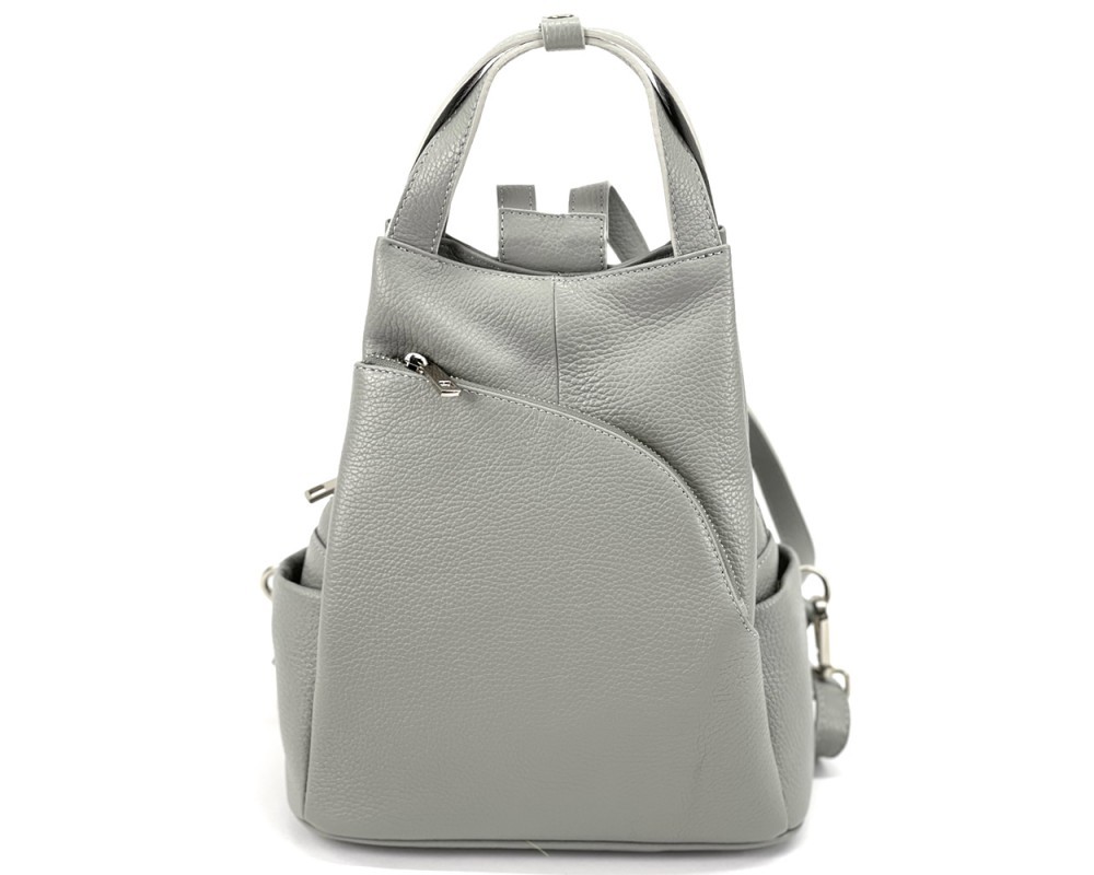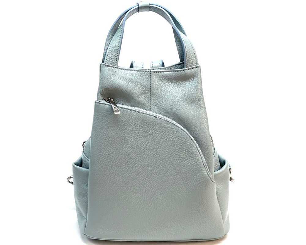 Handcrafted in Florence, Italy, this backpack showcases premium pebble-grain leather for durability and texture. Its asymmetrical zippered front pocket adds a modern touch, complemented by two side pockets for easy storage. Adjustable shoulder straps and a top handle enable comfortable and versatile carrying options. The back vertical zippered pocket provides extra convenience.