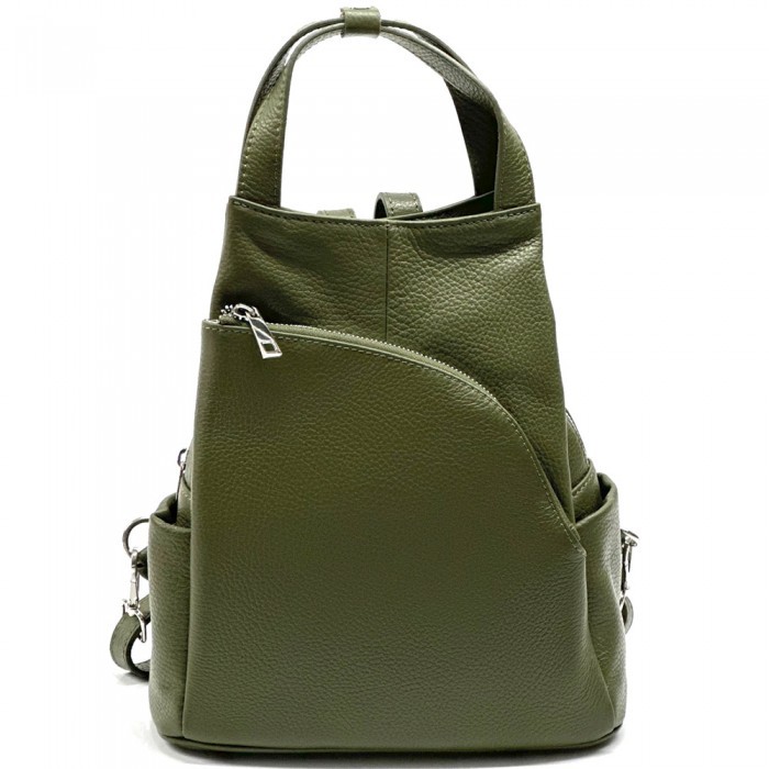 The spacious main compartment, secured with a zipper, includes a zippered pocket and slip pocket for organization. A wide, sturdy bottom ensures the backpack maintains its shape, while silver-tone hardware enhances its semi-rigid design. Proudly marked "Vera Pelle," this backpack reflects authentic Italian artistry.