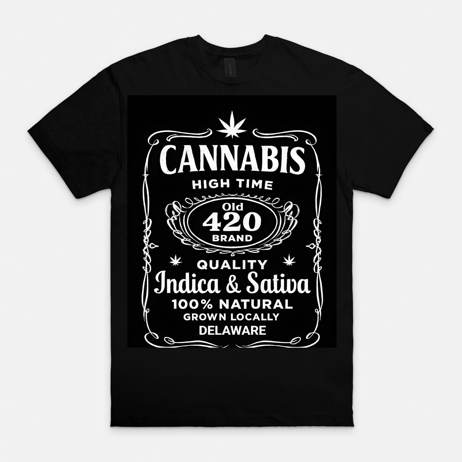 Vintage Cannabis Label Deisgn Featuring Ornate Typography and Borders. Softness and super smooth fit are what make this T-shirt a standout. 100% rin spun cotton tailored in a mordern fit. Front and Back Printing.