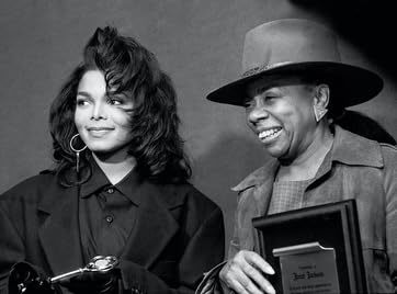 Offered for sale is a brand new 8"x10" BW photograph of singer, songwriter, actress, dancer and record producer Janet Jackson receiving a key to the city of Hartford from Mayor Carrie Saxon Perry.