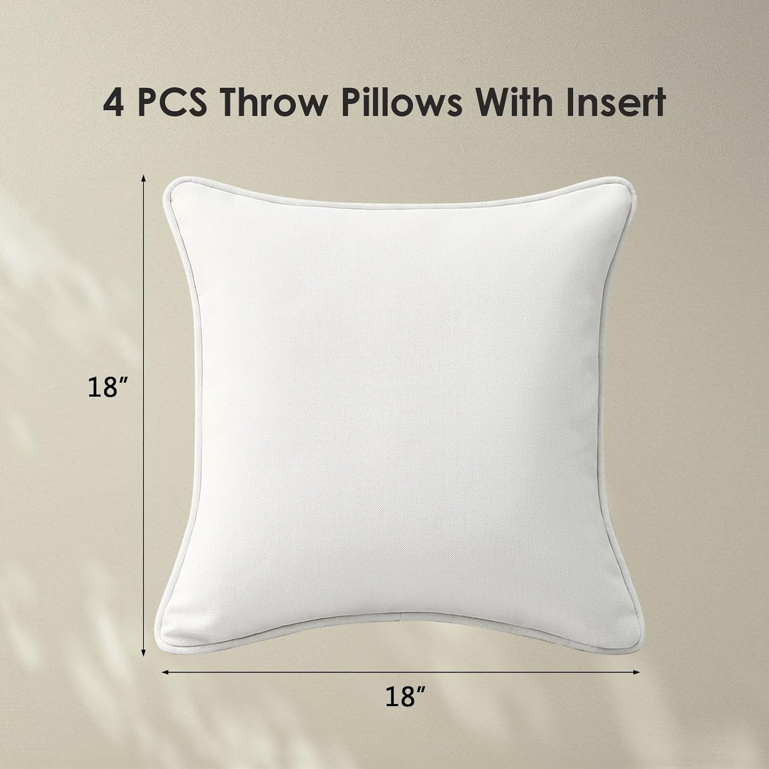 ?Size Selection? Including 4 outdoor throw pillows measuring 18" W x 18" L. Please allow 1~2cm deviation because of hand-cutting and sewing.