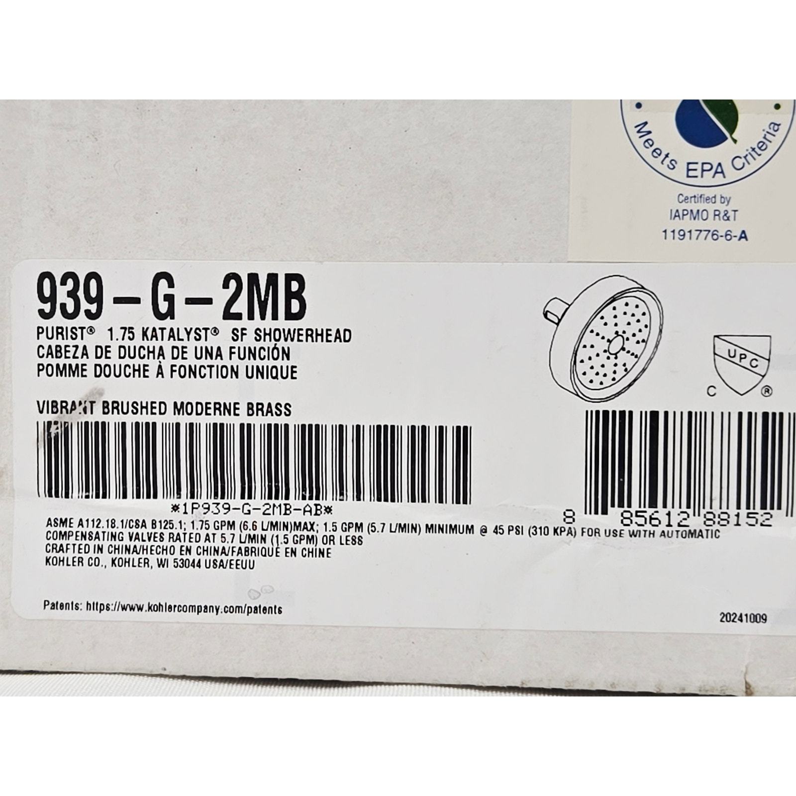 Kohler 939-G-2MB Purist Single Function Shower Head - Vibrant Brushed Brass