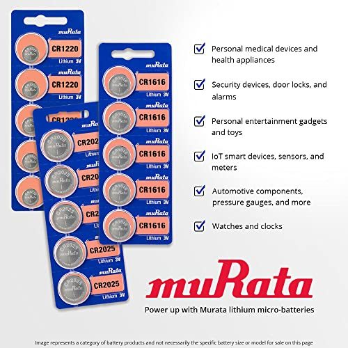 Murata produces batteries with excellent high performance and reliability, taking advantage of 40+ years of technology development and manufacturing expertise. These Murata CR2025 batteries are the perfect long lasting replacement for all your personal devices including keyfobs, blood sugar monitors, remote controls, digital thermometers, toys, calculators and more. Operating temperature: -30C to +70C (standard) -40C to +125C (heat-resistant). Nominal Capacity: 160mAh
