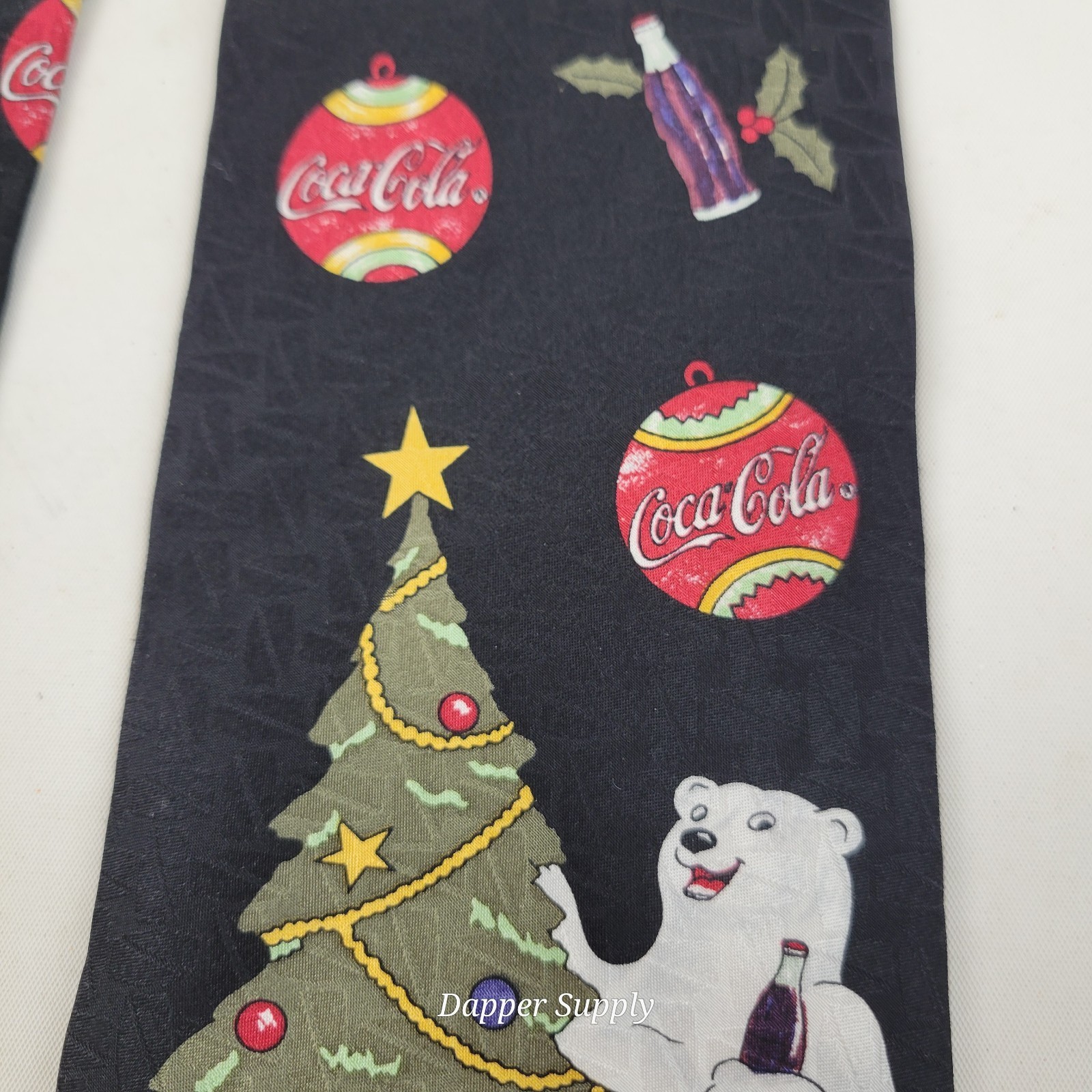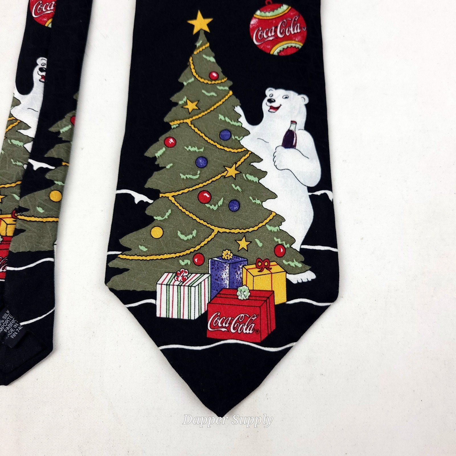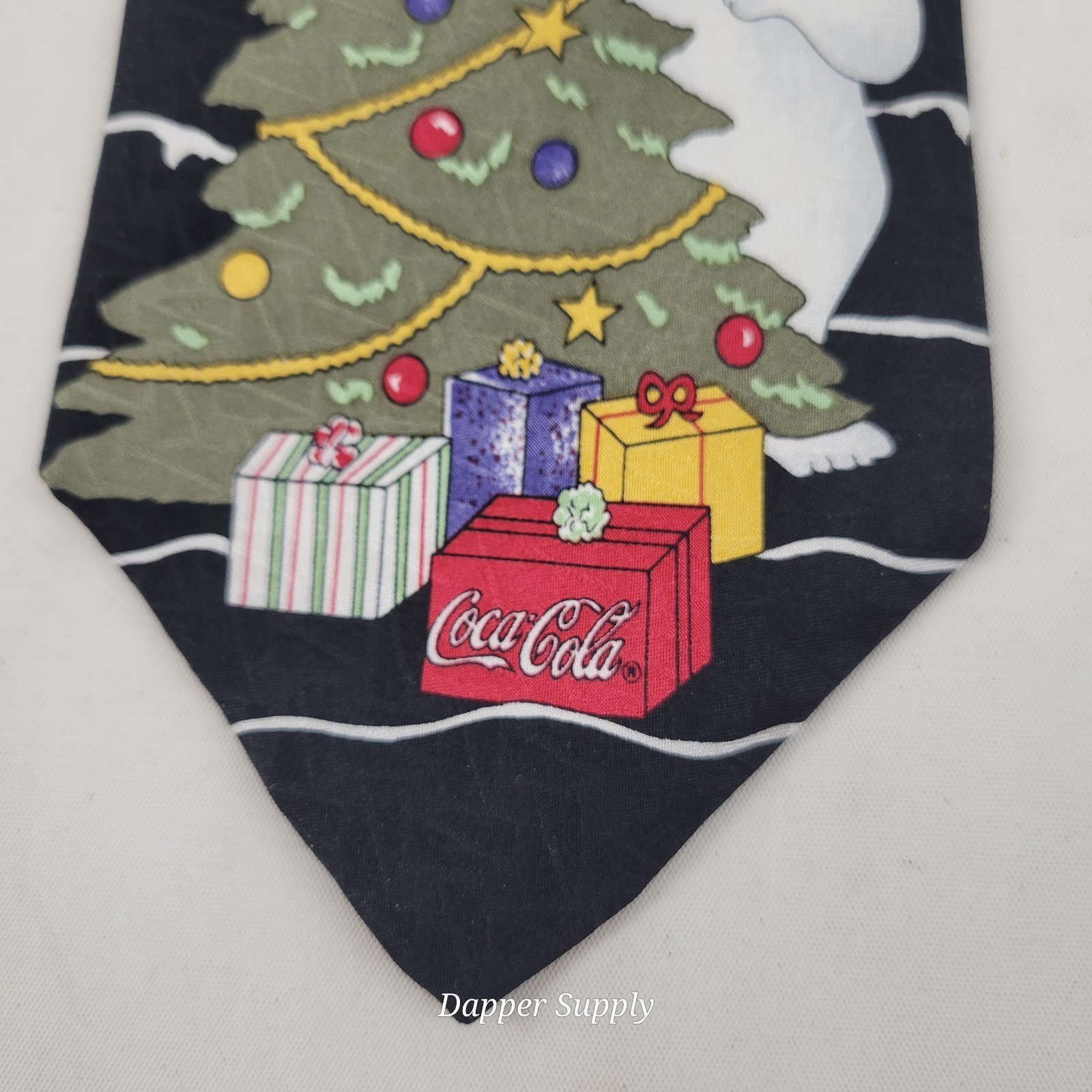 Vintage Christmas Tree Coca Cola Polar Bear Necktie 100% Silk Made in USA 54”