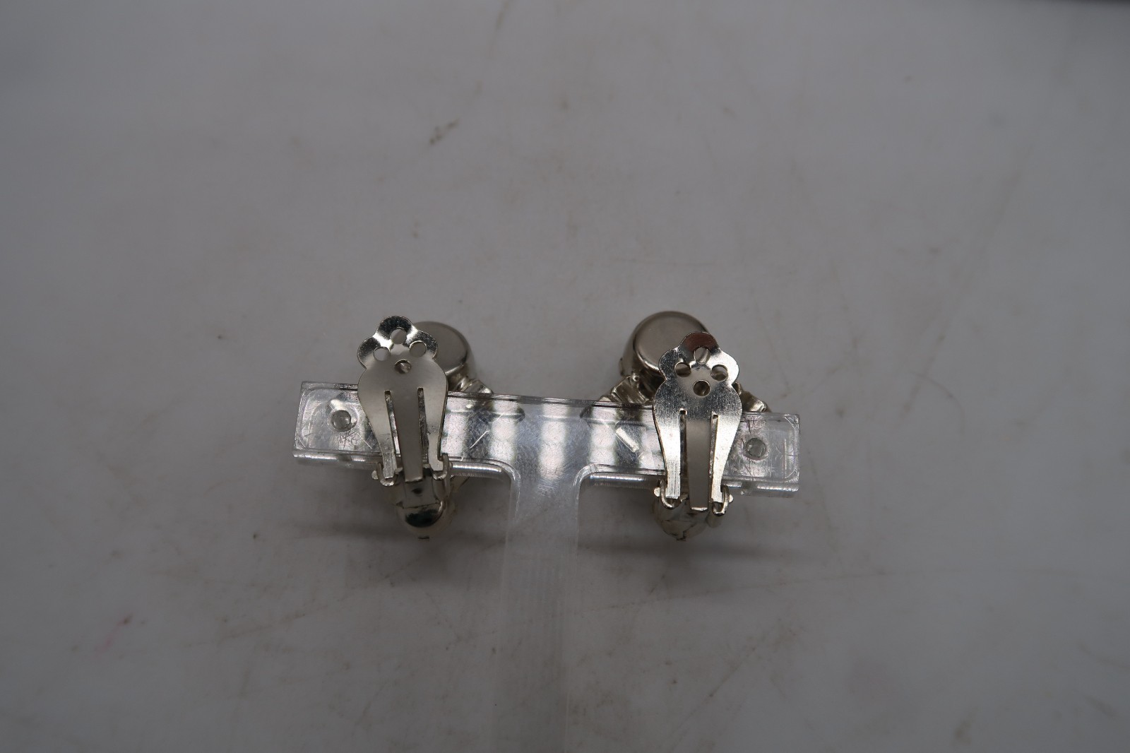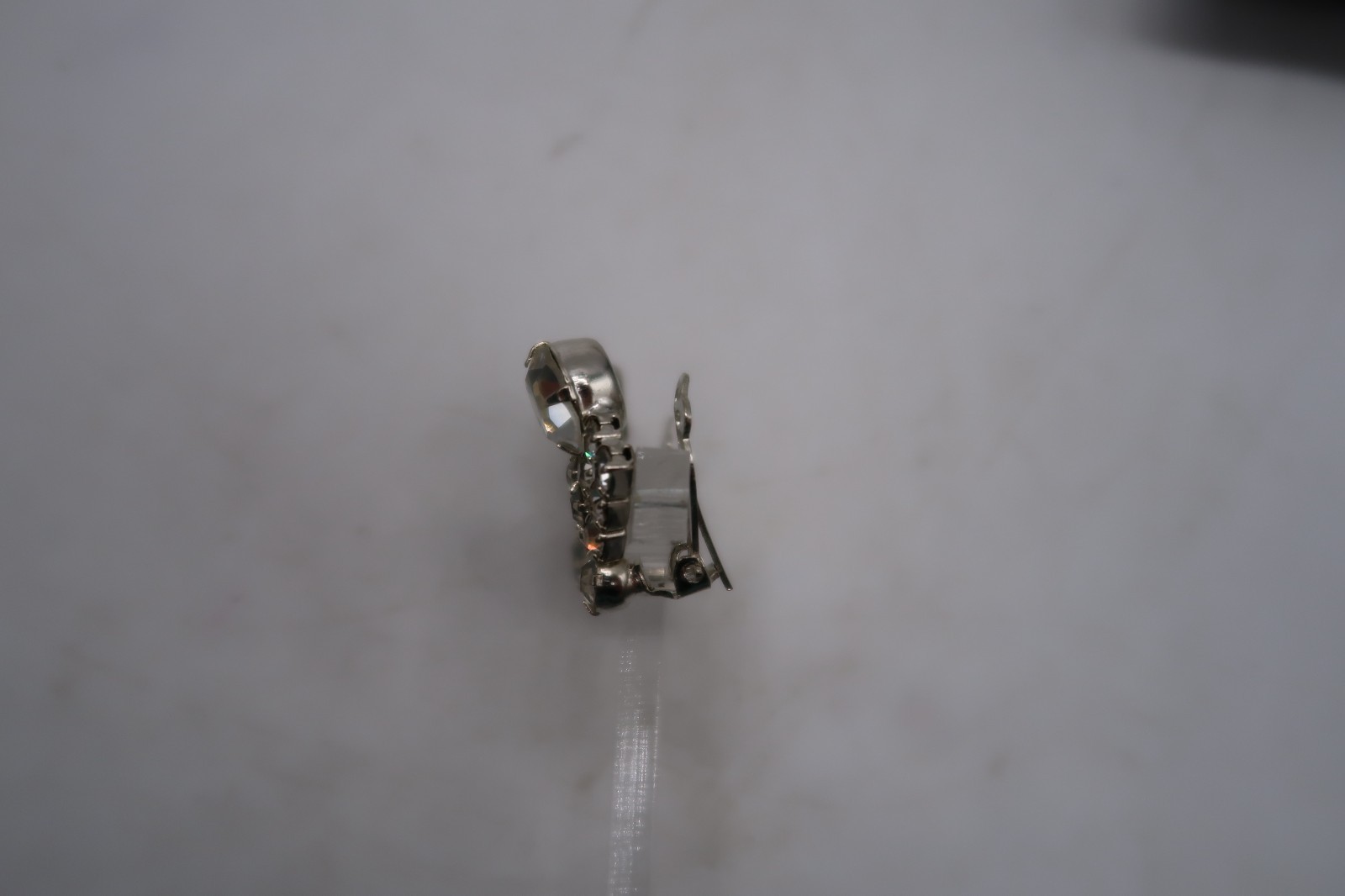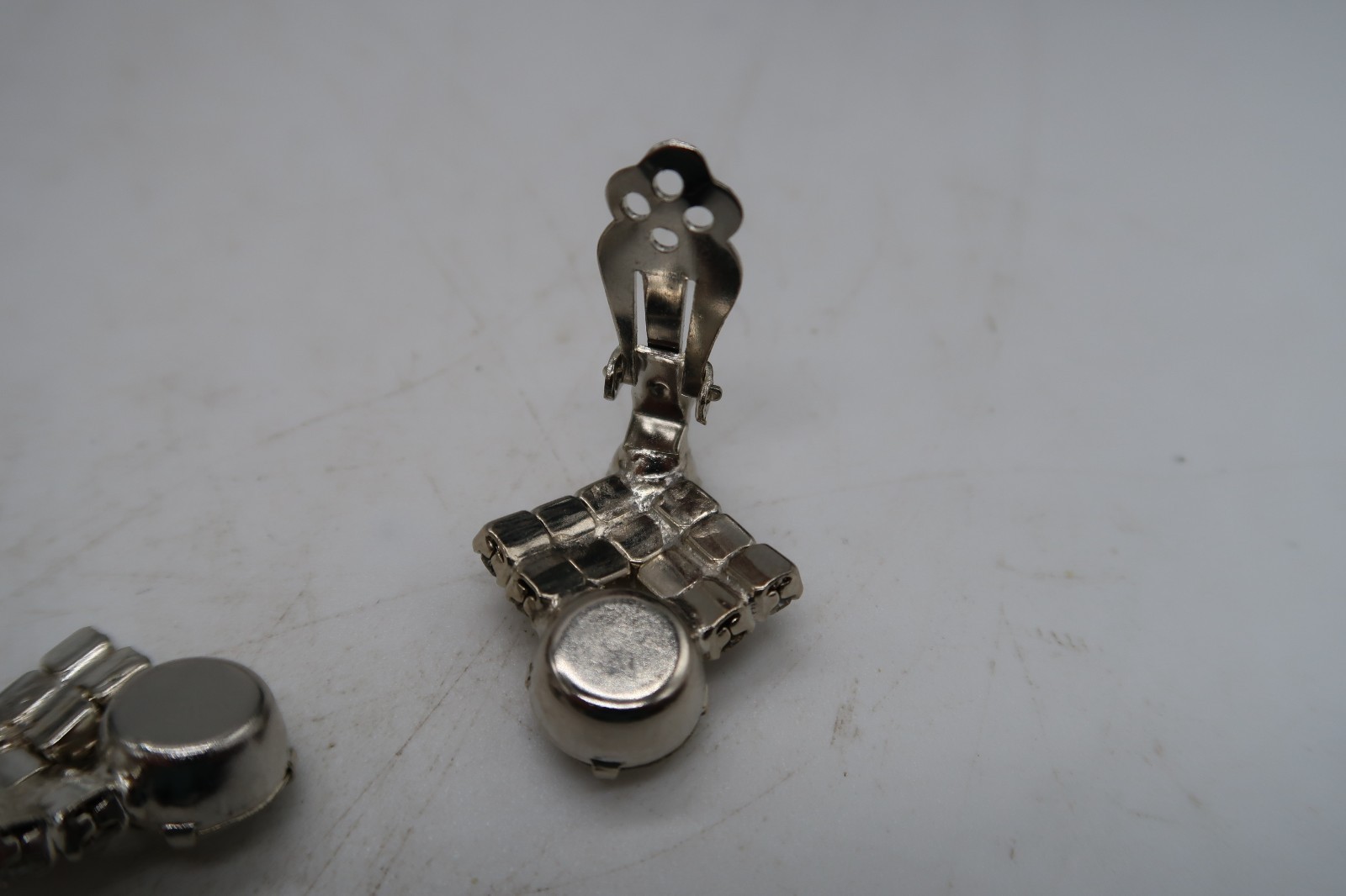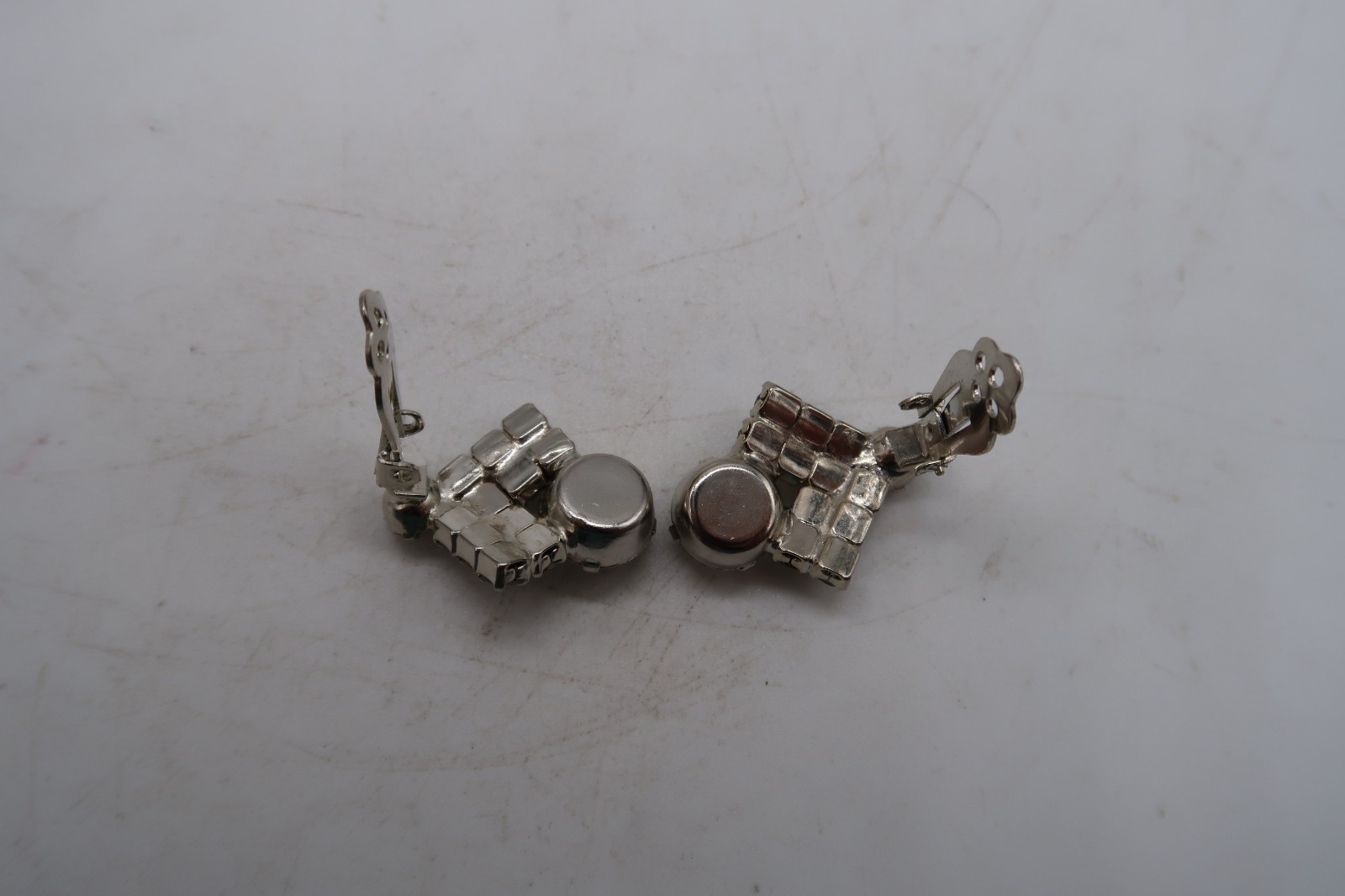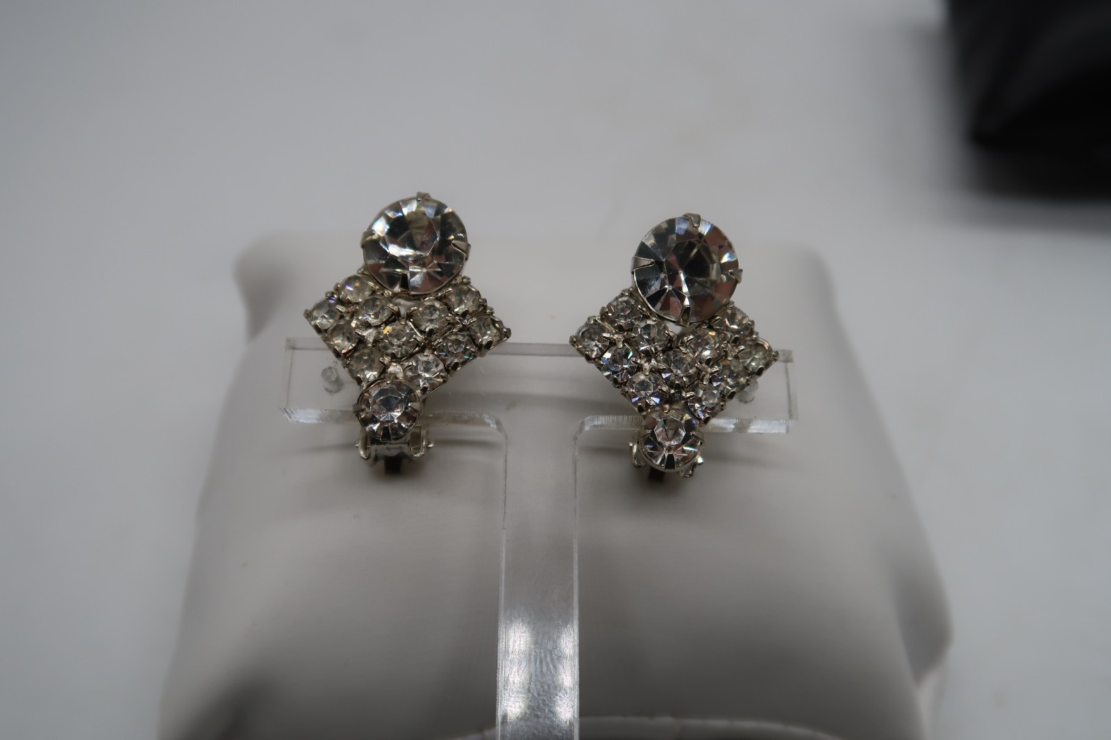 Vtg Diamond Pattern Clear Rhinestone Prong Set Clip-on Silver Tone Earrings