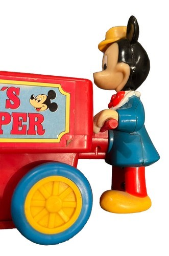 VTG Disney Mickey Corn Popper Toy Mouse Walks Pops Plays Music Popcorn Wagon