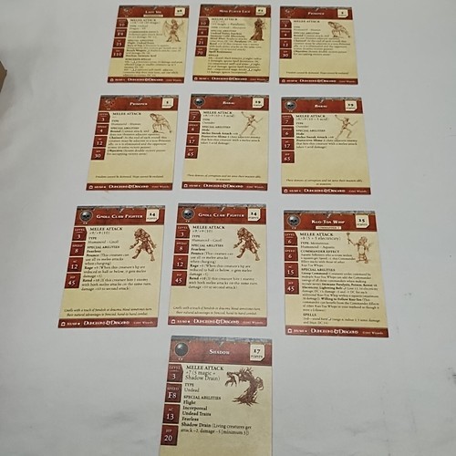 Lot Of (19) Dungeons And Dragons Night Below Miniatures Game Stat Cards