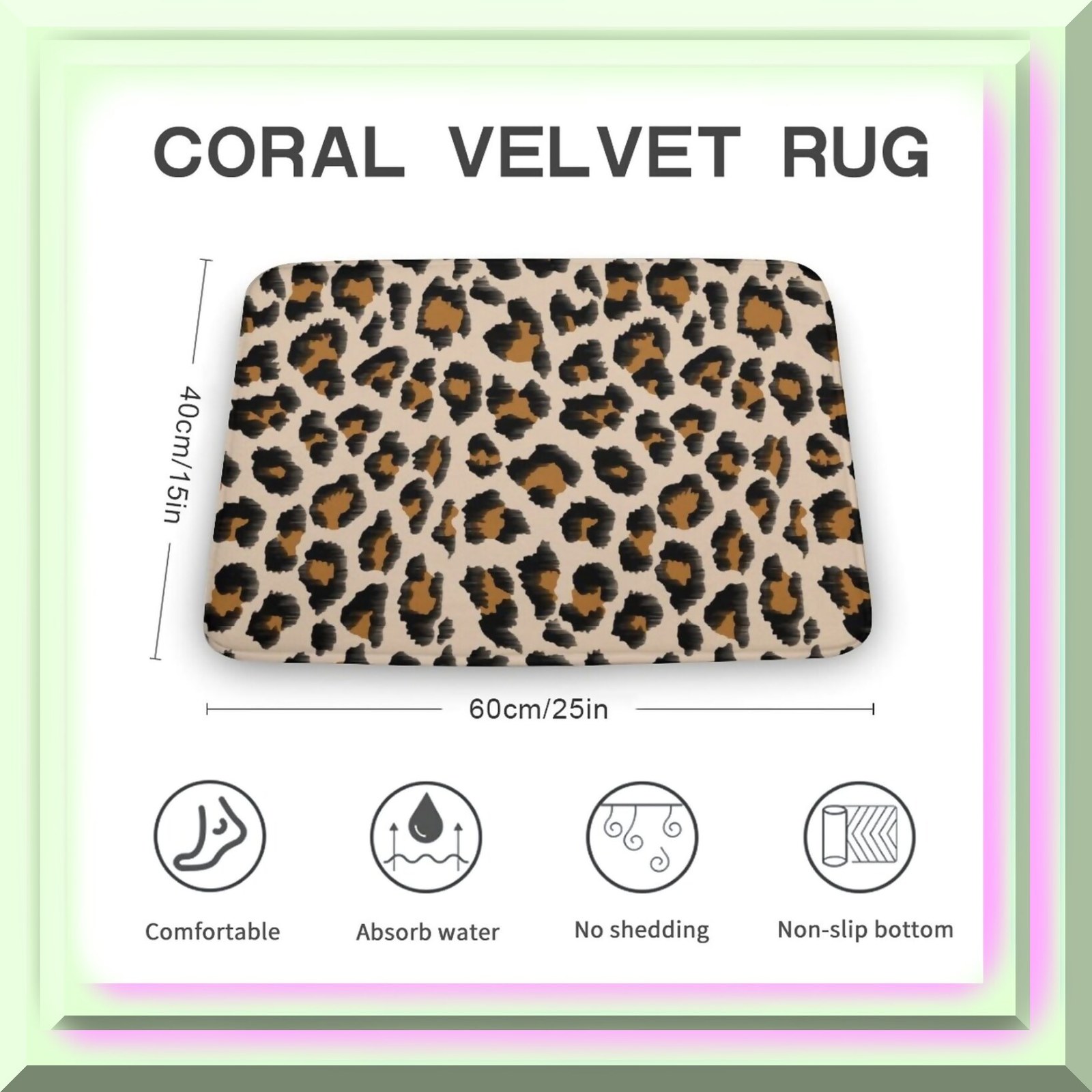 Leopard Non-Slip Bath Mat Soft Washable 16x24