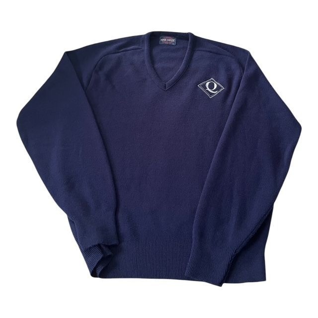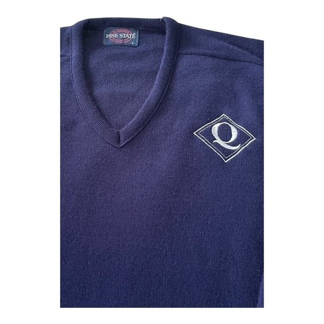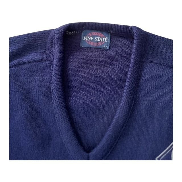 Vintage Pine State Navy V-Neck Sweater with Q Logo ? Size L ? Made in USA ? 1990s