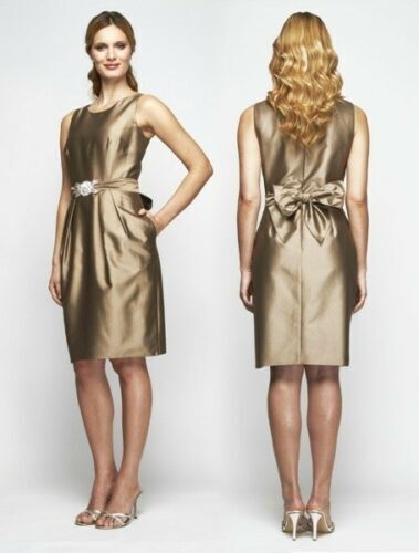 Alex Evenings Beaded Waist Taffeta Sheath Dress Petite Sz 10P Taupe