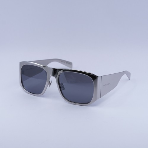 Saint Laurent SL636 002 Shiny Silver/Grey Silver Mirror 58-19-130 Sunglasses New Authentic