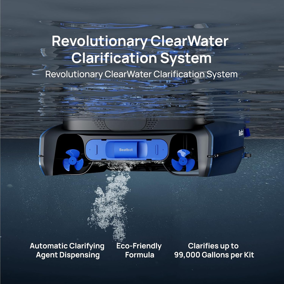 ?Revolutionary ClearWater Clarification System?The iSkim Ultra's ClearWater system automatically dispenses a powerful solution to tackle dirt, oils, and metal residues, preventing scum buildup and water discoloration, ensuring your pool water remains crystal-clear and healthy with minimal time and effort.