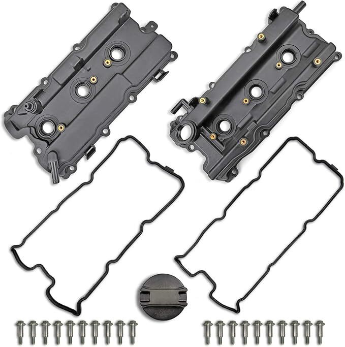 Front and Rear Valve Covers Compatible with 2003-2007 Murano , 2002-2008 Maxima , 2002-2006 Altima , 2002-2004 Infiniti I35 , 2004-2009 Quest 3.5L V6 Complete Valve Cover Sets with Bolts , Oil Cap , Valve Cover Gaskets , Spark Plug Seals , PCV Valve. Easy and ready for installation Replacement for Part Numbers: Front Valve Cover: 13264-7Y010, 13264-8J113, 13264-ZA30A, 264-985 Rear Valve Cover: 13264-7Y000, 13264-8J102, 264-984 For Early Nissan VQ35DE engine. This valve cover set is year specific. Please check the fitment carefully before ordering Check the listing pictures for actual units. Pls contact us if you have any questions