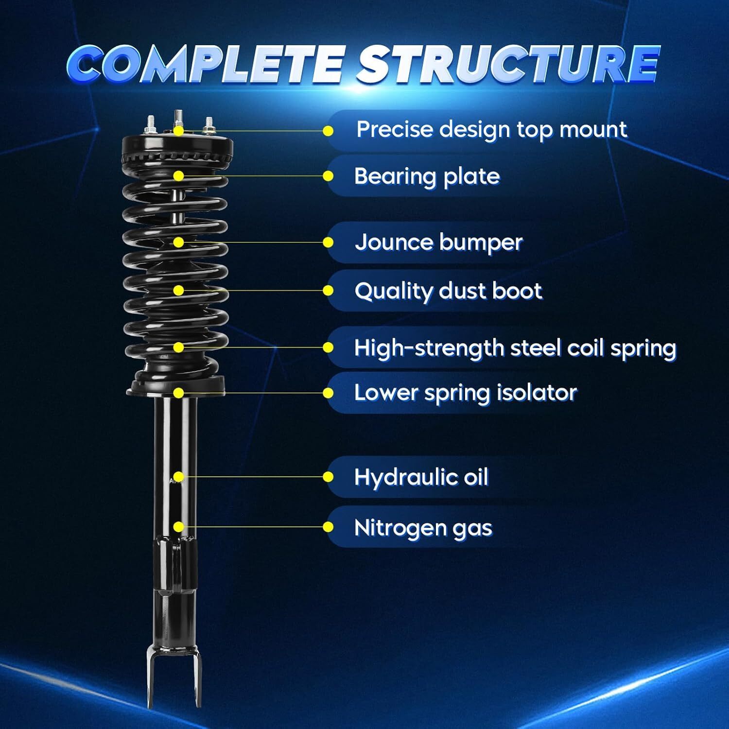 Compatible with: for Dodge Charger RWD 2006-2010, for Dodge Magnum RWD 2005-2008, for Chrysler 300 RWD 2005-2010 Replace for Part Number: Replace 172248 5797 Kit Includes: 1x front left strut shock assembly with coil spring, 1x front right strut shock assembly with coil spring, 1x rear left strut shock absorber, 1x rear right strut shock absorber Inflatable Design: Greater damping for greater work reliability; High-pressure gas and oil are separated by a floating piston, eliminating oil emulsification Quality Assurance: 12-month warranty! tested before shipping, perfect match to the factory part. 100% satisfaction guarantee. for any problems, Pls contact us via email