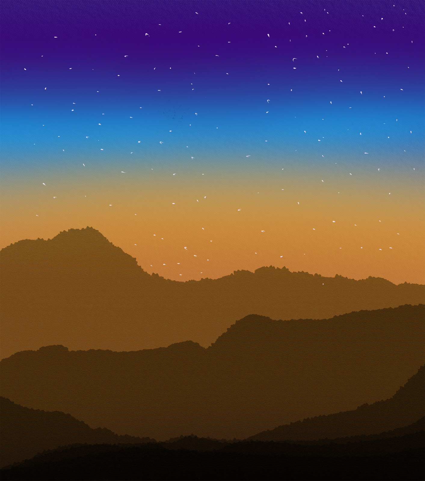 A digital painting of serene mountains cloaked in shadow, their layered peaks glowing softly beneath a vast, star-strewn night sky. Deep indigo hues cradle shimmering stars that whisper of dreams and infinity. This tranquil scene evokes solitude and wonderโan ode to stillness, resilience, and natureโs quiet strength beneath the cosmic veil.