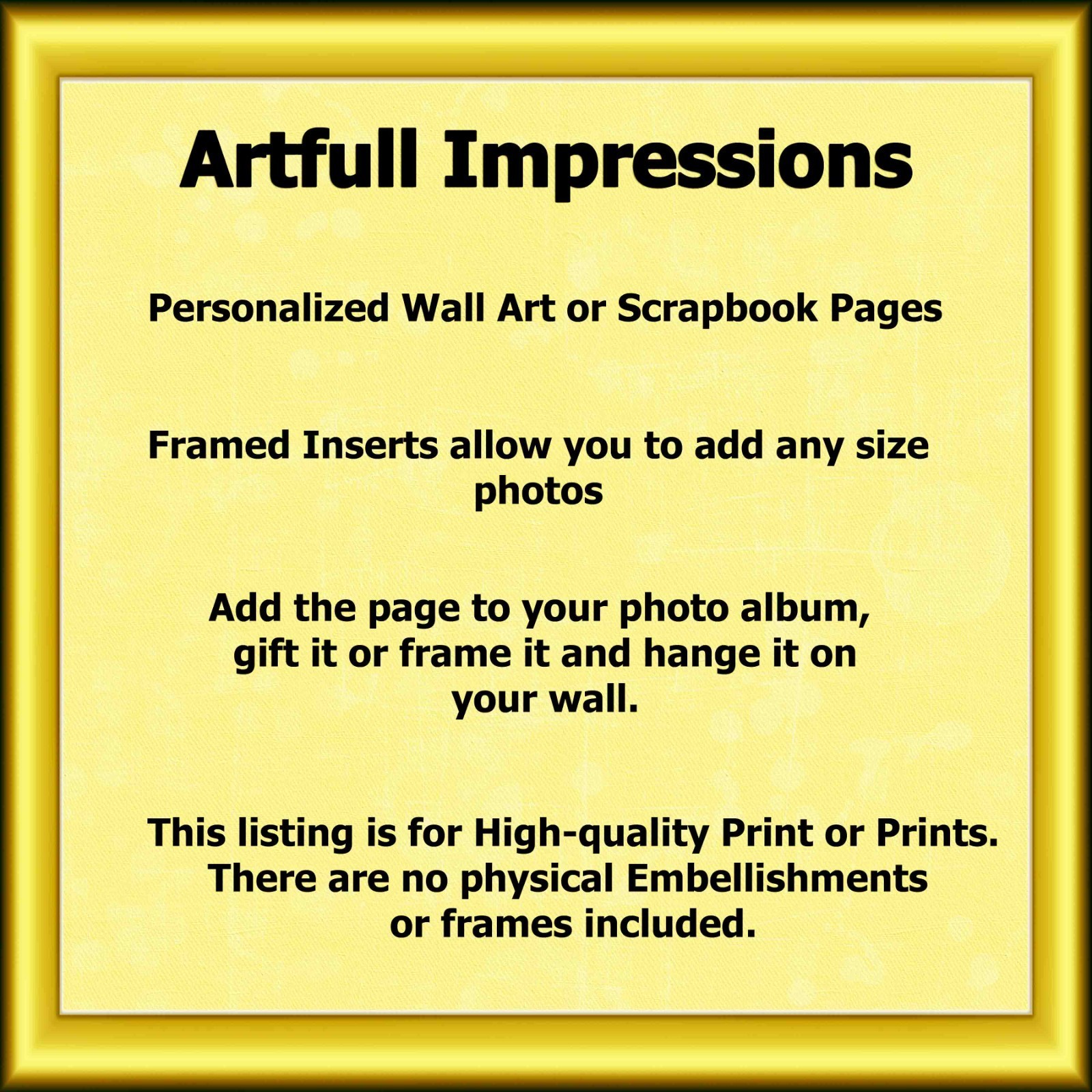 that the scrapbook page/pages or Wall art are printed especially for you and
