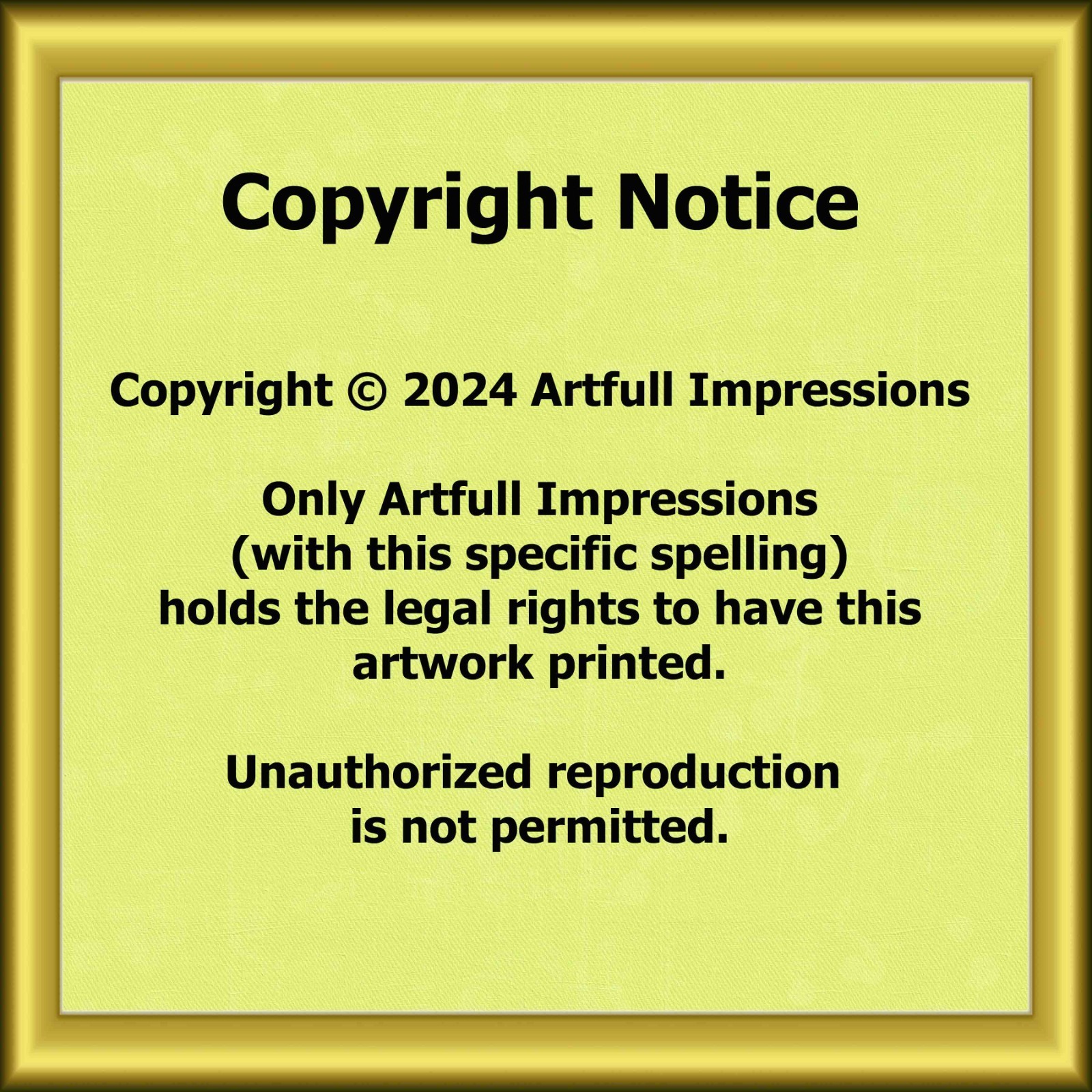 spelling) holds the legal rights to have this artwork printed. Unauthorized