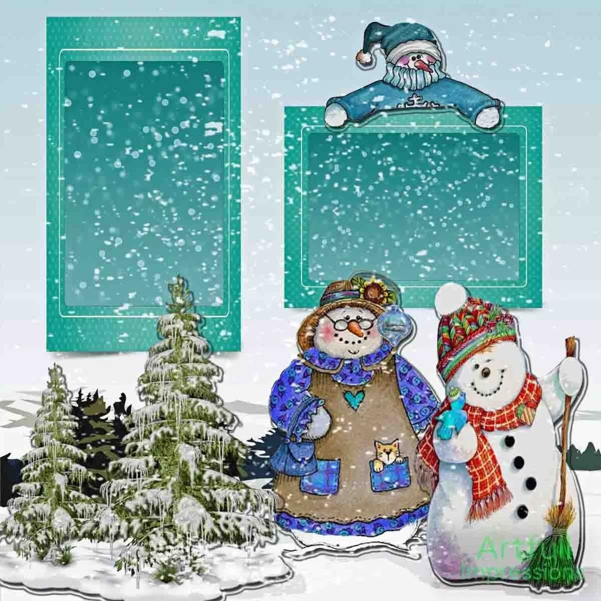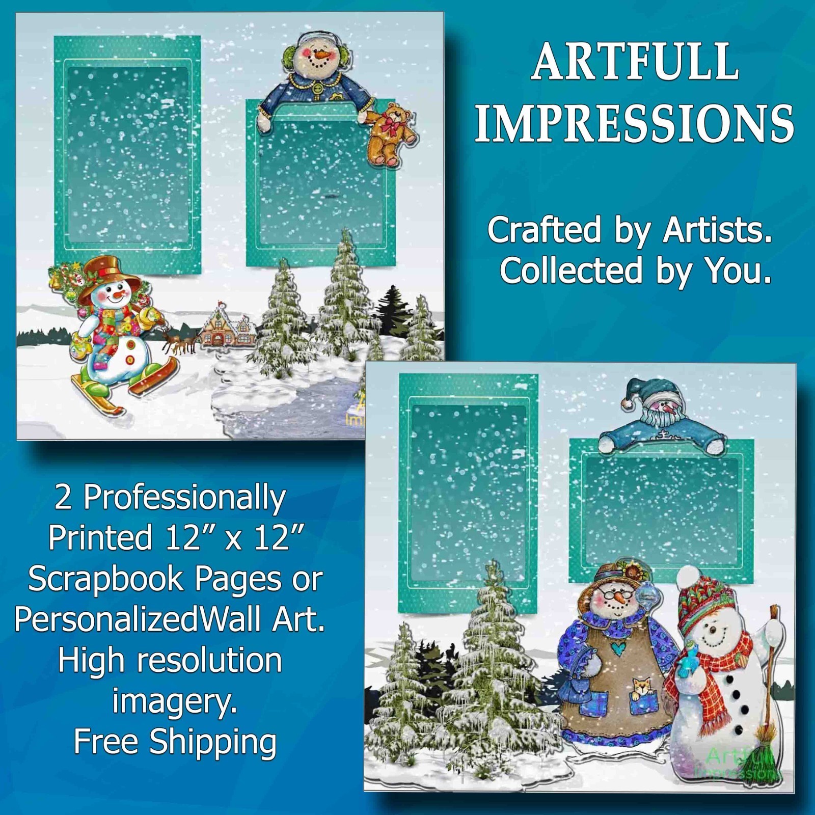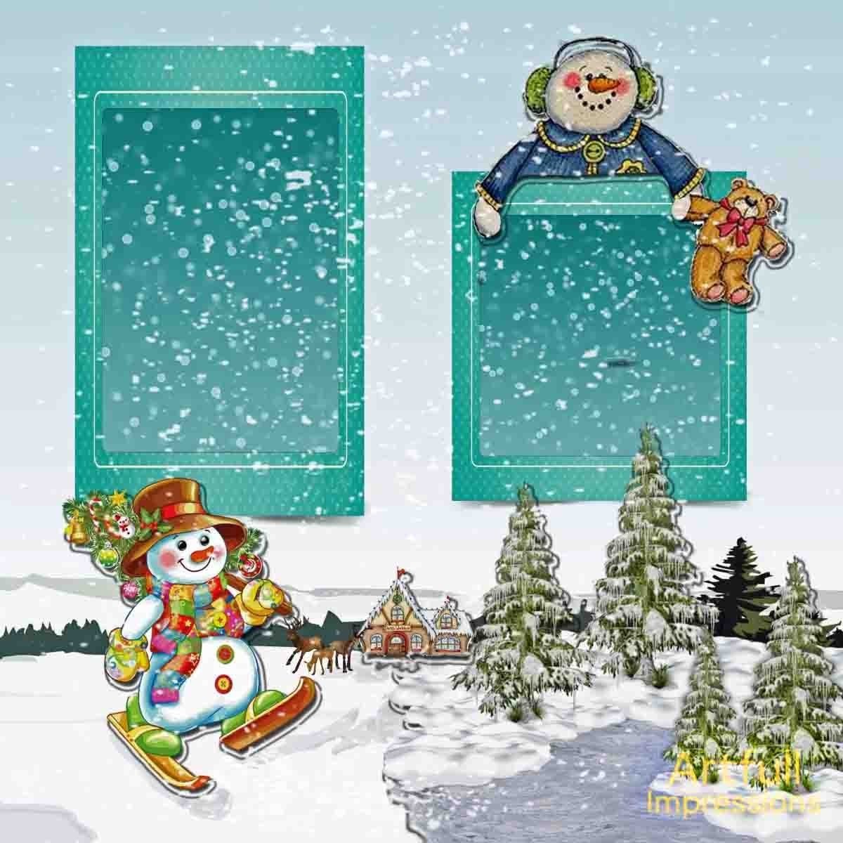 Christmas - Snow Day Smiles – Set of 2 Seasonal Wall Art or Scrapbook Page