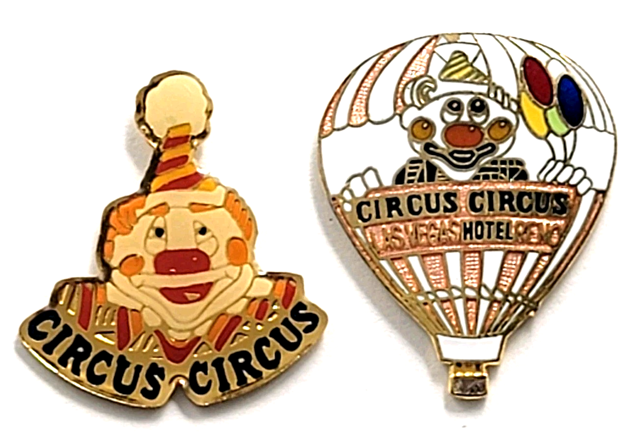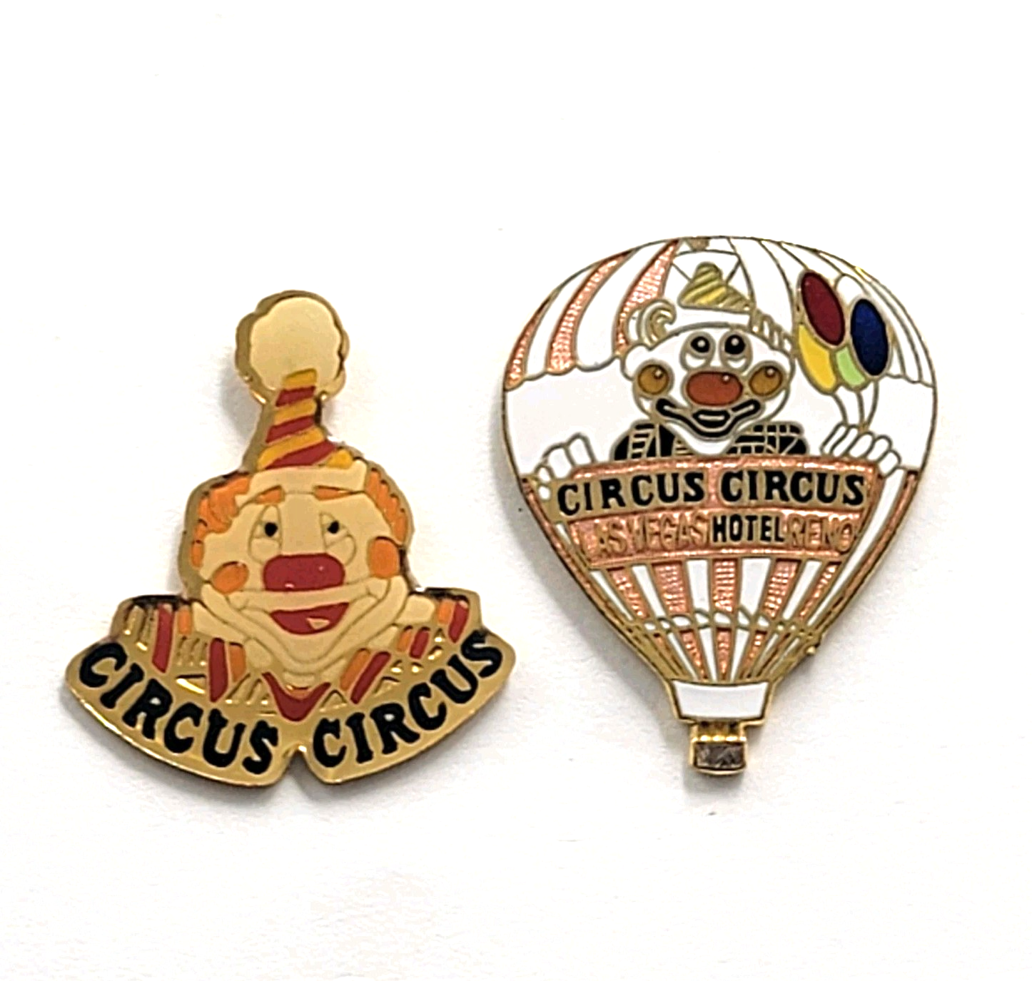 Lot 2 Circus Circus Casino Hotel Souvenir Pins Clown Logo Hot Air Balloon Promo