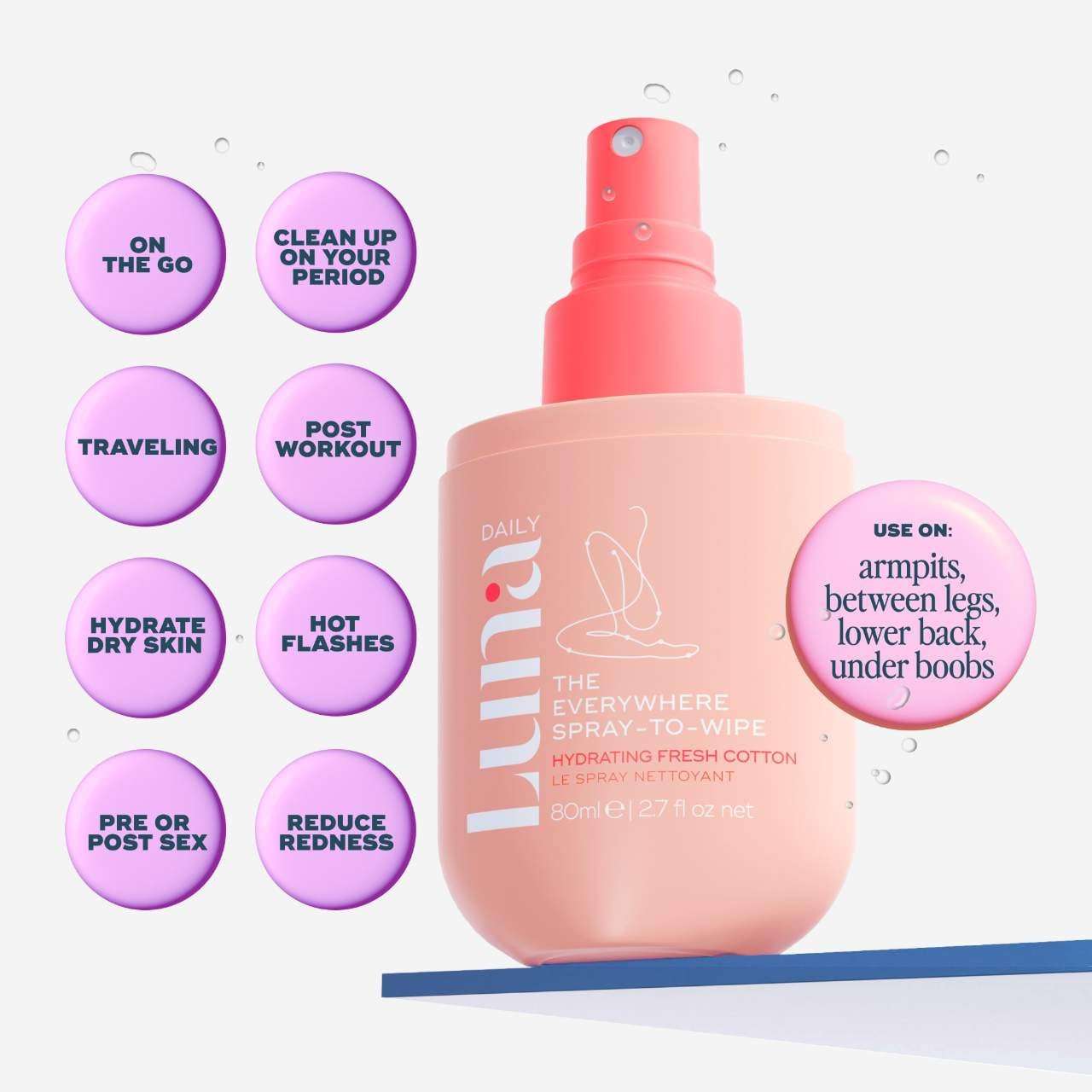 What Else You Need to Know: Need a quick refresh? This pH-balanced, full-body cleansing spray is your go-to for on-the-go freshness. Perfect for your gym bag or travel essentials, it?s designed for all skin including inner thighs, bikini line, underarms, and beneath the breasts. Spray directly onto skin or use with a tissue to create a gentle, eco-friendly wipe.