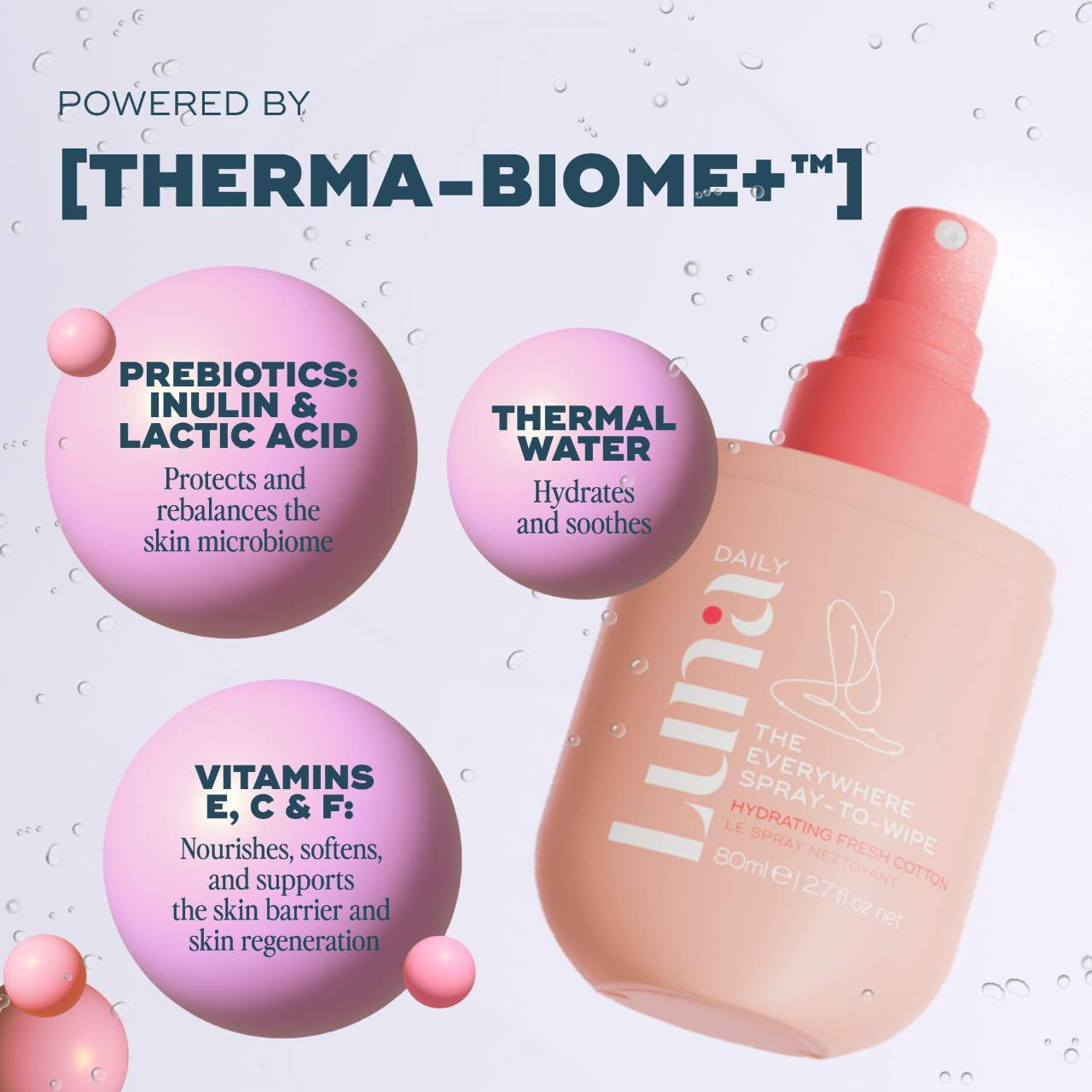 Formulated with OBGYNs, it's powered by Luna Daily?s THERMA-BIOME+? complex?a blend of thermal water, prebiotic lactic acid, inulin, and vitamins C, E, and F?to nourish, protect, and support your skin's natural microbiome. Soap-free, fragrance-free, and safe for all skin types, including sensitive and allergy prone. One bottle contains 250 wipes.