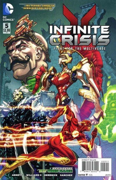 *Written by Dan Abnett. Art by Larry Stroman and Szymon Kudranski. Cover by Gene Ha. In the tradition of INJUSTICE: GODS AMONG US, a new videogame sensation makes its comics debut. Developed by Turbine and WBIE Games, INFINITE CRISIS brings together unique versions of DC Universe heroes from across the multiverse to head off a crisis that threatens to destroy all of their worlds! Heroes and villains from Gaslight, Atomic, Arcane, Mecha and other worlds battle and join forces with Prime Earth Batman in this rapidly escalating conflict! On Earth Prime, Cyborg, The Flash and Zatanna search for the missing Batman. Meanwhile, still reeling from disaster, Batman and his strange new allies - Arcane Green Lantern, Gaslight Catwoman, Atomic Wonder Woman and Nightmare Robin - have taken off in pursuit of Atomic Two-Face. The killer's in possession of the Eternal Key that he stole from Harbinger - and this artifact could give him the power to level a universe!