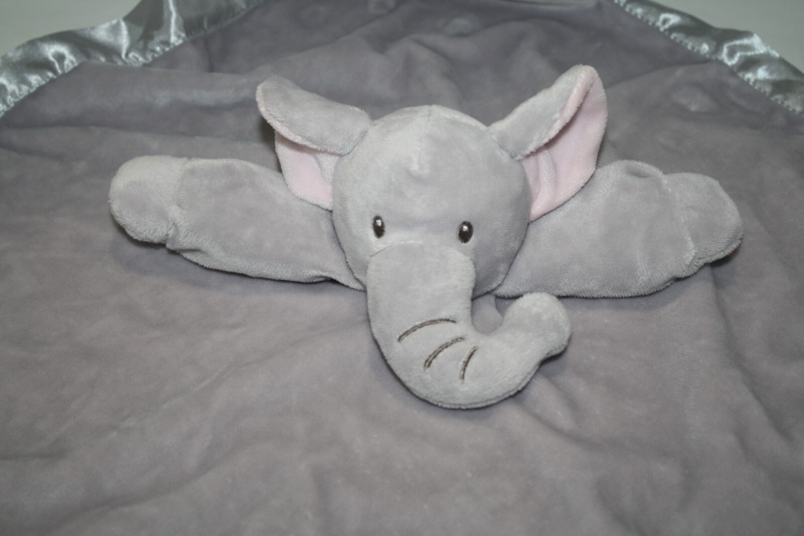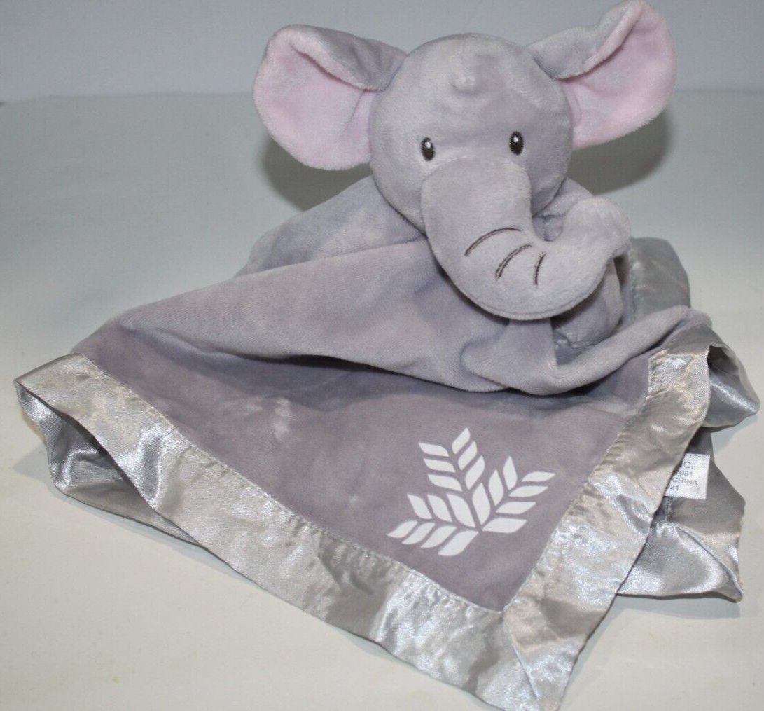 Anico Plush Gray Pink Ears Elephant Security Blanket Satin Trim Soft Toy Lovey