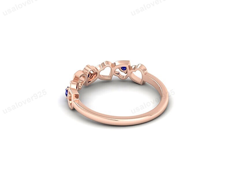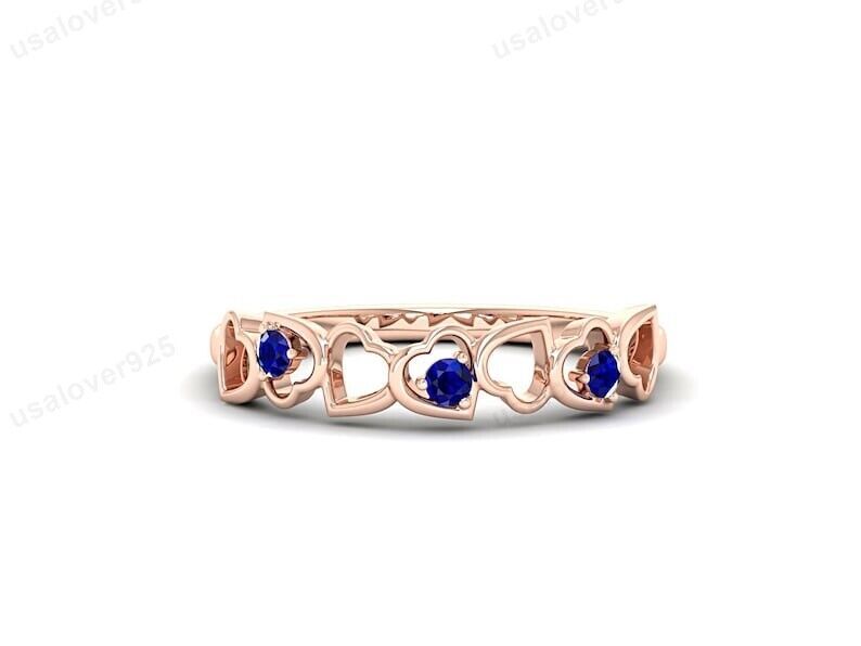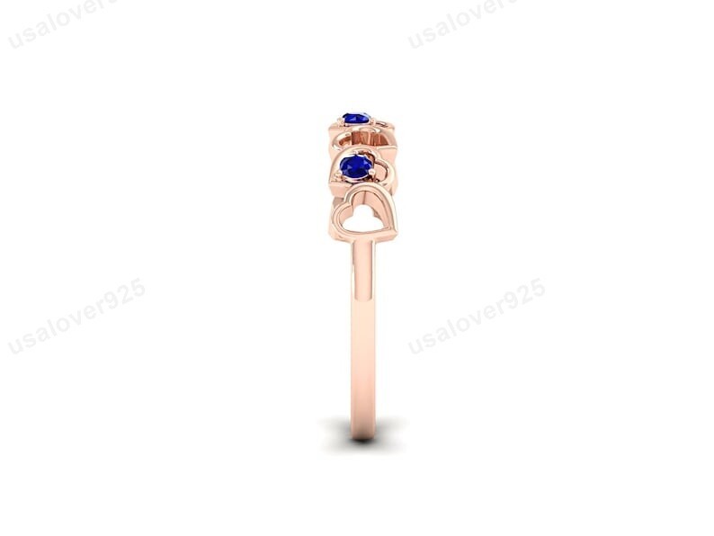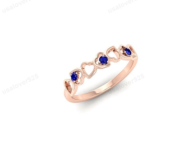 Blue Sapphire Gemstone Women Band Ring, 925 Sterling Silver Heart Jewelry