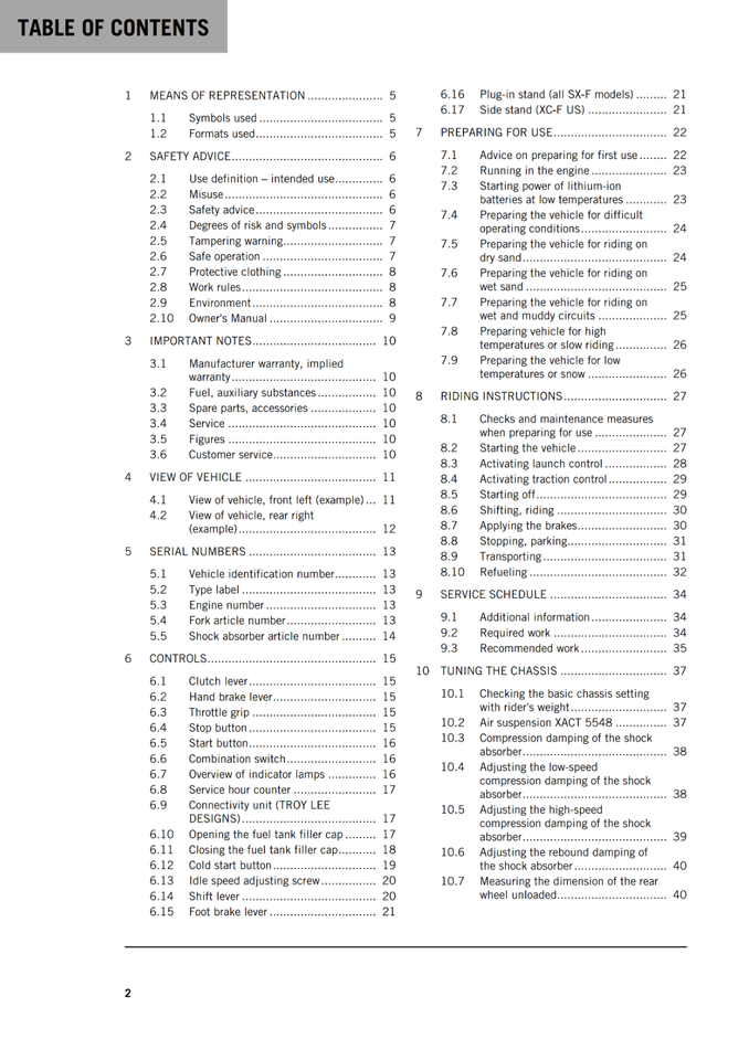 KTM 2021 - 250 XC-F SX-F TROY LEE DESIGNS - OWNERS MANUAL USER GUIDE
