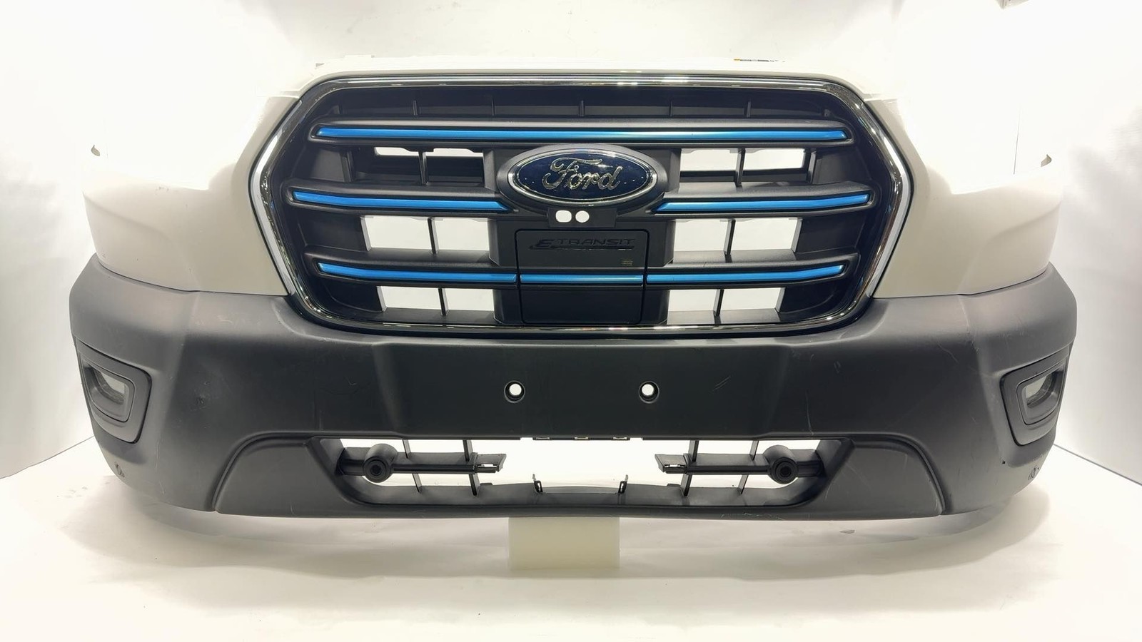 Additional notes: 2020-2024 Ford E Transit Ev Front Bumper Assembly Blue White Gouge Scratch Oem No Camera,with Fog Lamps And Park Sensors. Painted Upper.